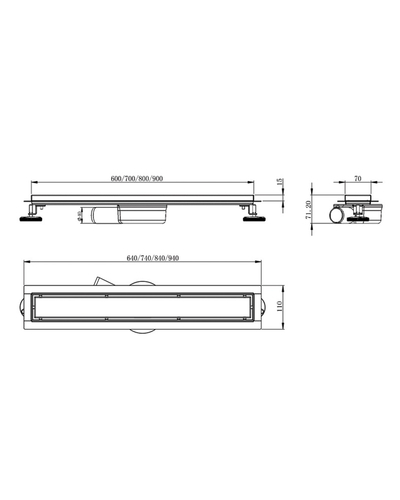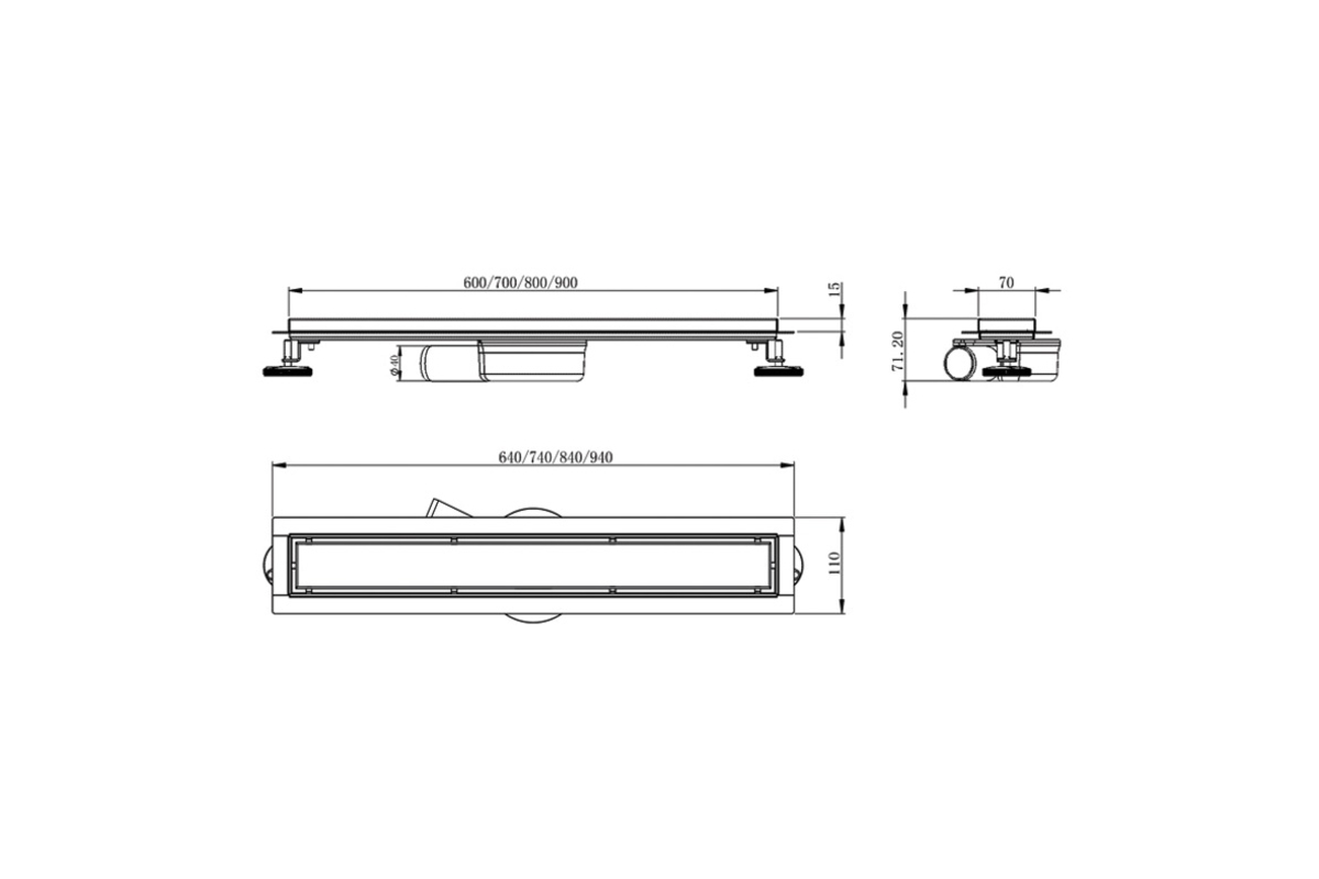 MASTER LINEA Onda линейный трап 600мм, комбинированный затвор, поворотный сифон, патрубок Ø40/50, с перфорированной решеткой, cepillado cromo.