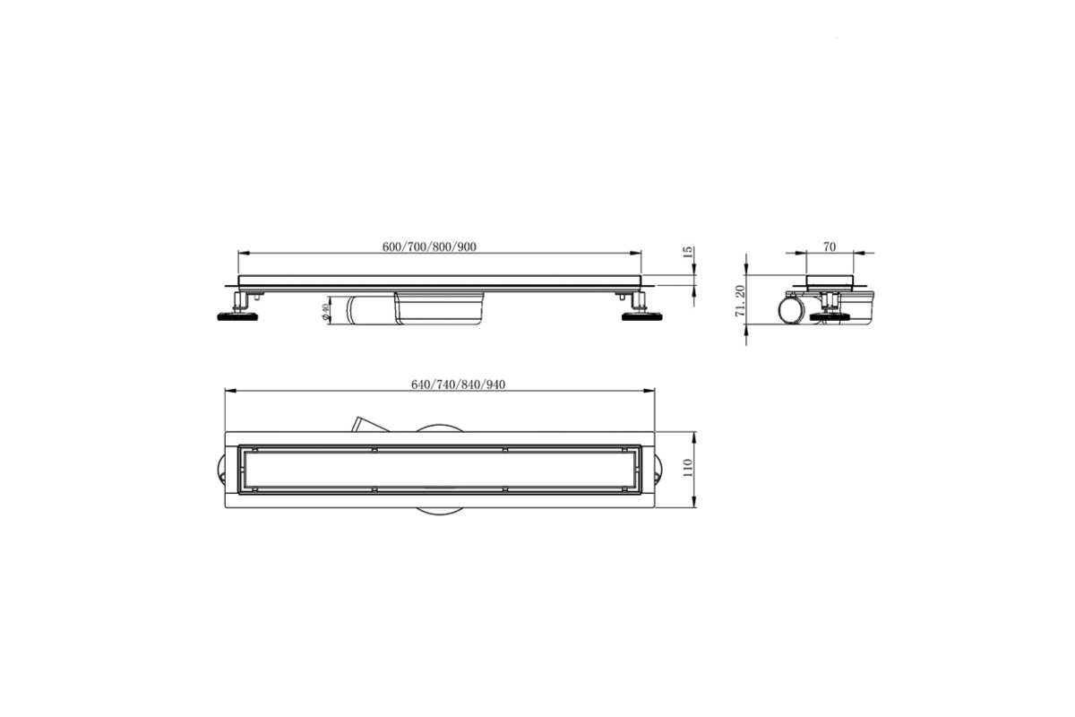 MASTER LINEA Celula линейный трап 700мм, комбинированный затвор, поворотный сифон, патрубок Ø40/50, с перфорированной решеткой, cepillado cromo.
