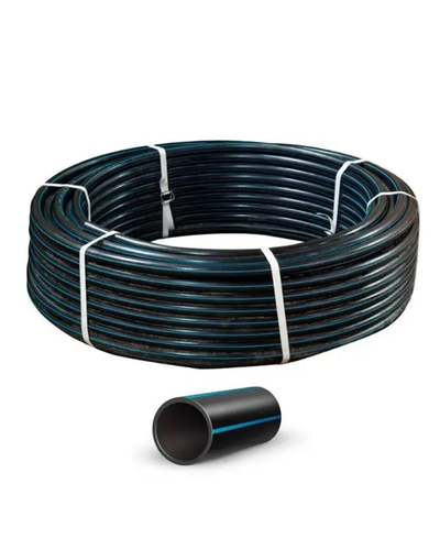 Труба водопроводная полиэтиленовая 25 мм*2.0 мм черная с синей полосой 10 атм (100 м в бухте) садовая, изготавливается из качественного сырья, применяется для полива, сада и огорода.