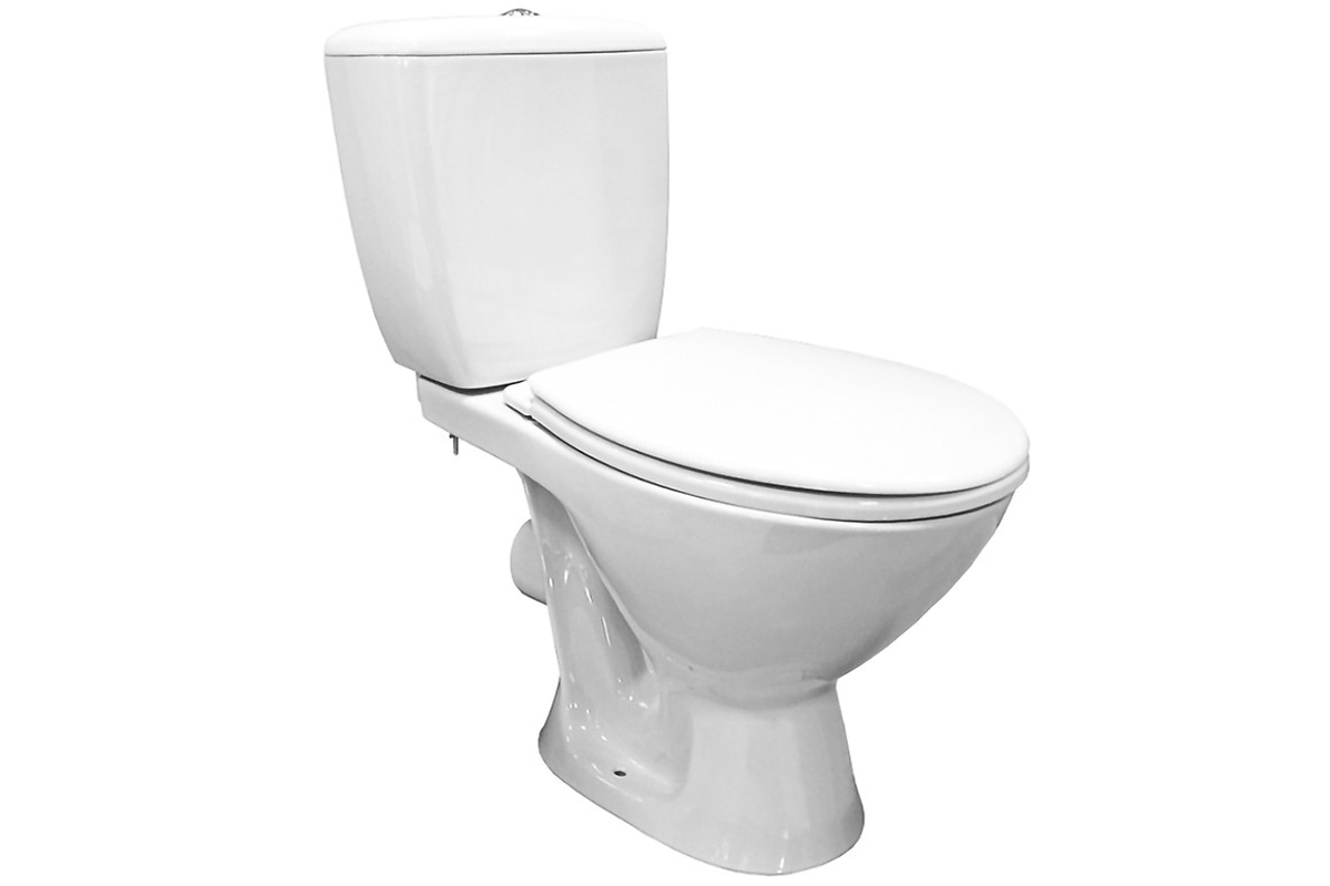 Унитаз-компакт KORAL оснащен двойной системой смыва на 3/6 л, имеет горизонтальный выпуск и подвод воды снизу бачка.
