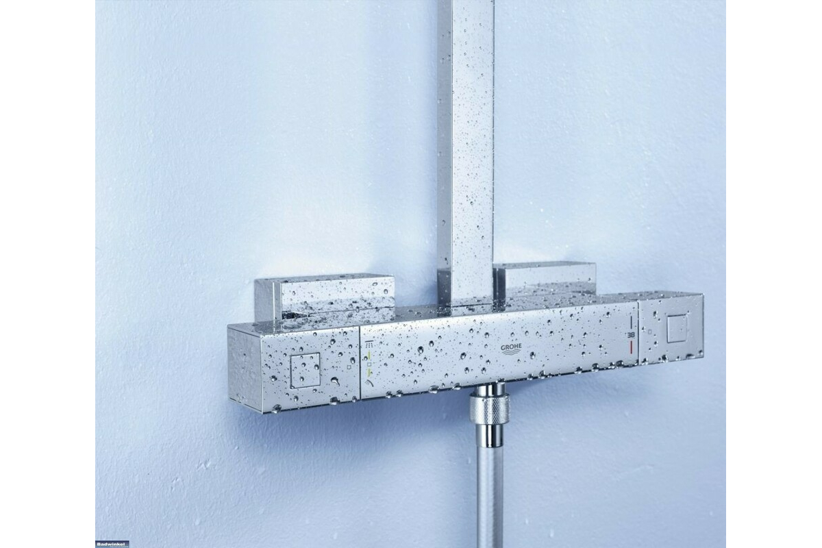 Минимальный расход воды 7л/мин GROHE TurboStat® встроенный термоэлемент GROHE EcoJoy® Технология совершенного потока при уменьшенном расходе воды GROHE DreamSpray® превосходный поток воды GROHE StarLight® хромированная поверхность С системой SpeedClean против известковых отложений Twistfree против перекручивания шланга Совместим с проточным водонагревателем от 18 kВ/ч