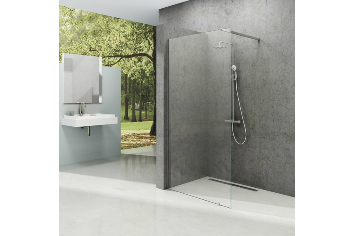 Душевая кабина Walk-In Wall состоит из безопасного закаленного стекла толщиной 8 мм. Устойчивость изделия обеспечивает металлический держатель, определяющий ширину открытого входа.