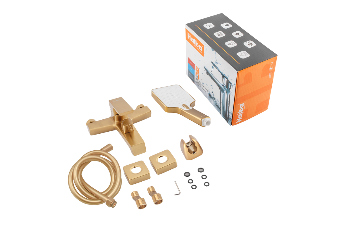 Шланг 150 см, ручная лейка 5 режимов размером 11х27 см, держатель для лейки, эксцентрики, чашки, резиновые прокладки, руководство по экплуатации и гарантийный талон