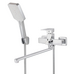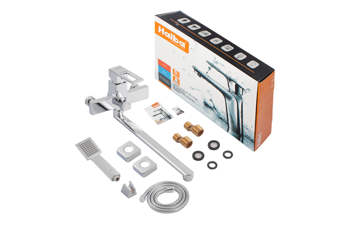 Шланг 150 см, ручная лейка 5 режимов размером 11х27 см, держатель для лейки, эксцентрики, чашки, резиновые прокладки, руководство по экплуатации и гарантийный талон