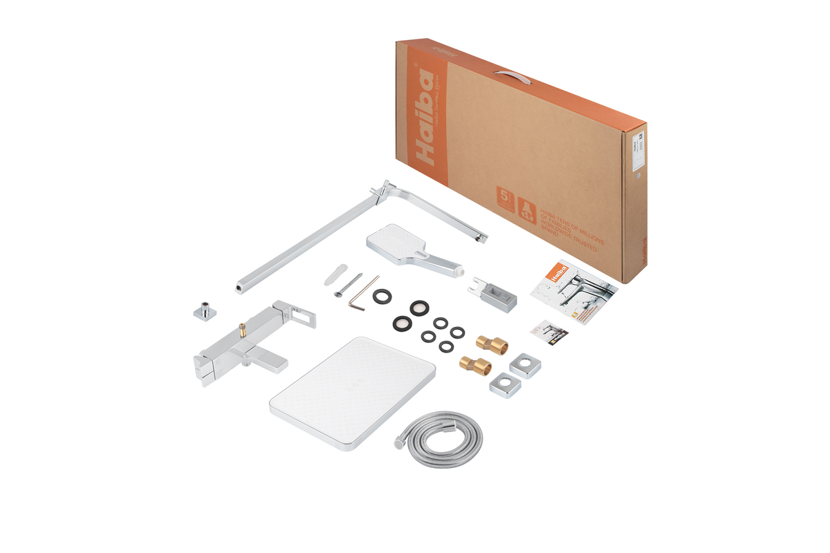 Шланг 150 см, ручная лейка 5 режимов, потолочная лейка, чашки, эксцентрики, резиновые прокладки, держатель для лейки