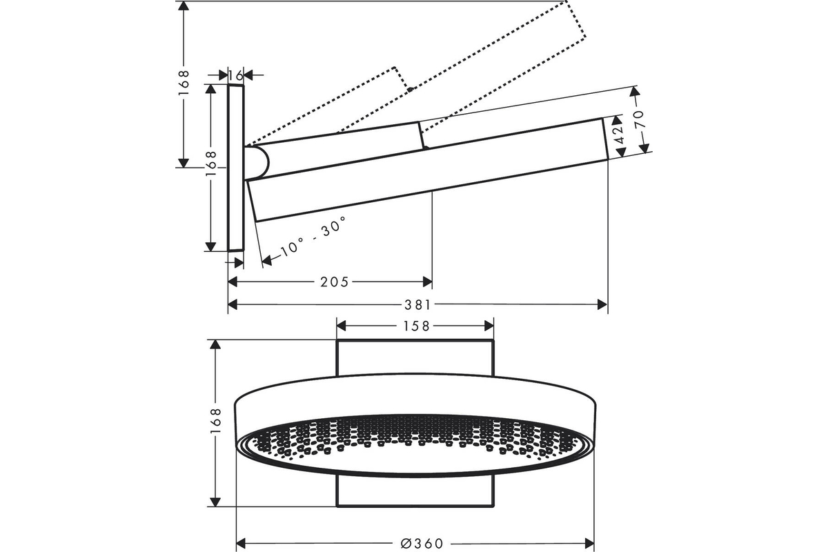 Верхний душ hansgrohe Rainfinity 360 1jet с настенным соединителем 26230990 золото - производится из качественных материалов.