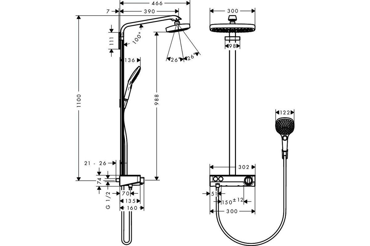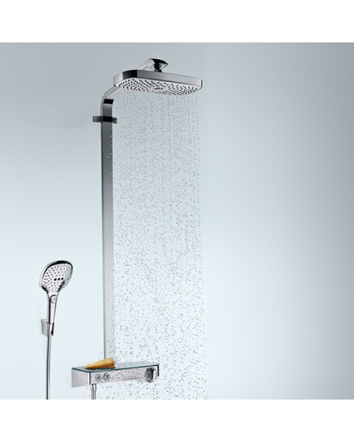 Душевая система Hansgrohe Raindance Select E Showerpipe 300 2Jet с термостатом, белый/хром (27126400) - отличается эффектным видом, функциональностью и простотой применения, а материалы высокого качества, из которых он выполнен, гарантируют надежную работу в течение многих лет.