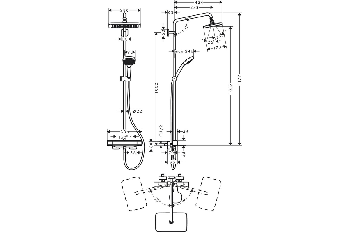 Душевая система Hansgrohe Croma E Showerpipe 280 1jet EcoSmart с термостатом, хром (27660000) - отличается эффектным видом, функциональностью и простотой применения, а материалы высокого качества, из которых он выполнен, гарантируют надежную работу в течение многих лет.