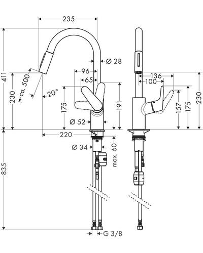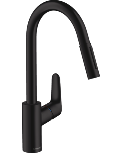 Смеситель для кухни Hansgrohe Focus Focus 240 2jet с выдвижным изливом, черный матовый (31815670) - отличается эффектным видом, функциональностью и простотой применения, а материалы высокого качества, из которых он выполнен, гарантируют надежную работу в течение многих лет.