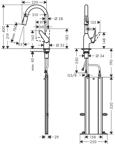 Смеситель для кухни Hansgrohe Focus M42-H220 2Jet с выдвижным изливом, Sbox, хром (71820000) - отличается эффектным видом, функциональностью и простотой применения, а материалы высокого качества, из которых он выполнен, гарантируют надежную работу в течение многих лет.