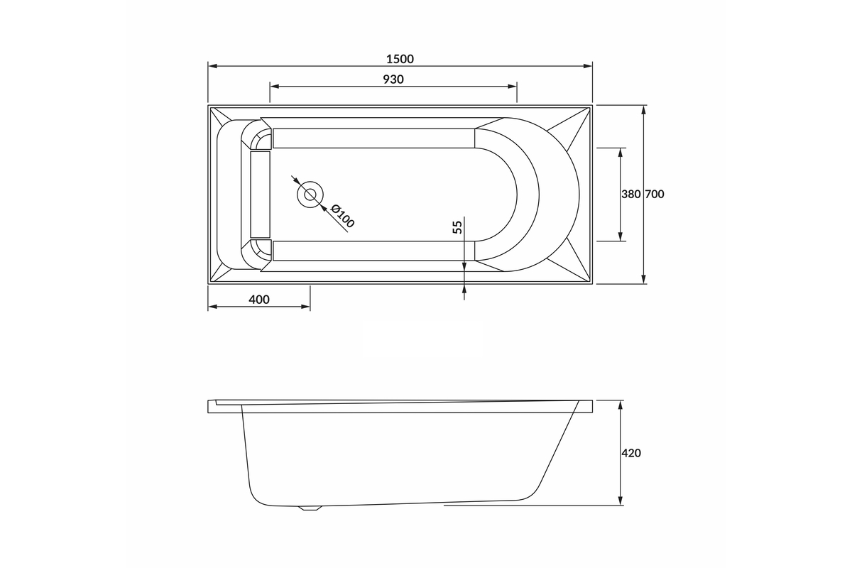 Ванна акриловая Imprese Valtice New 150*70*42 см без ножек b0700655070