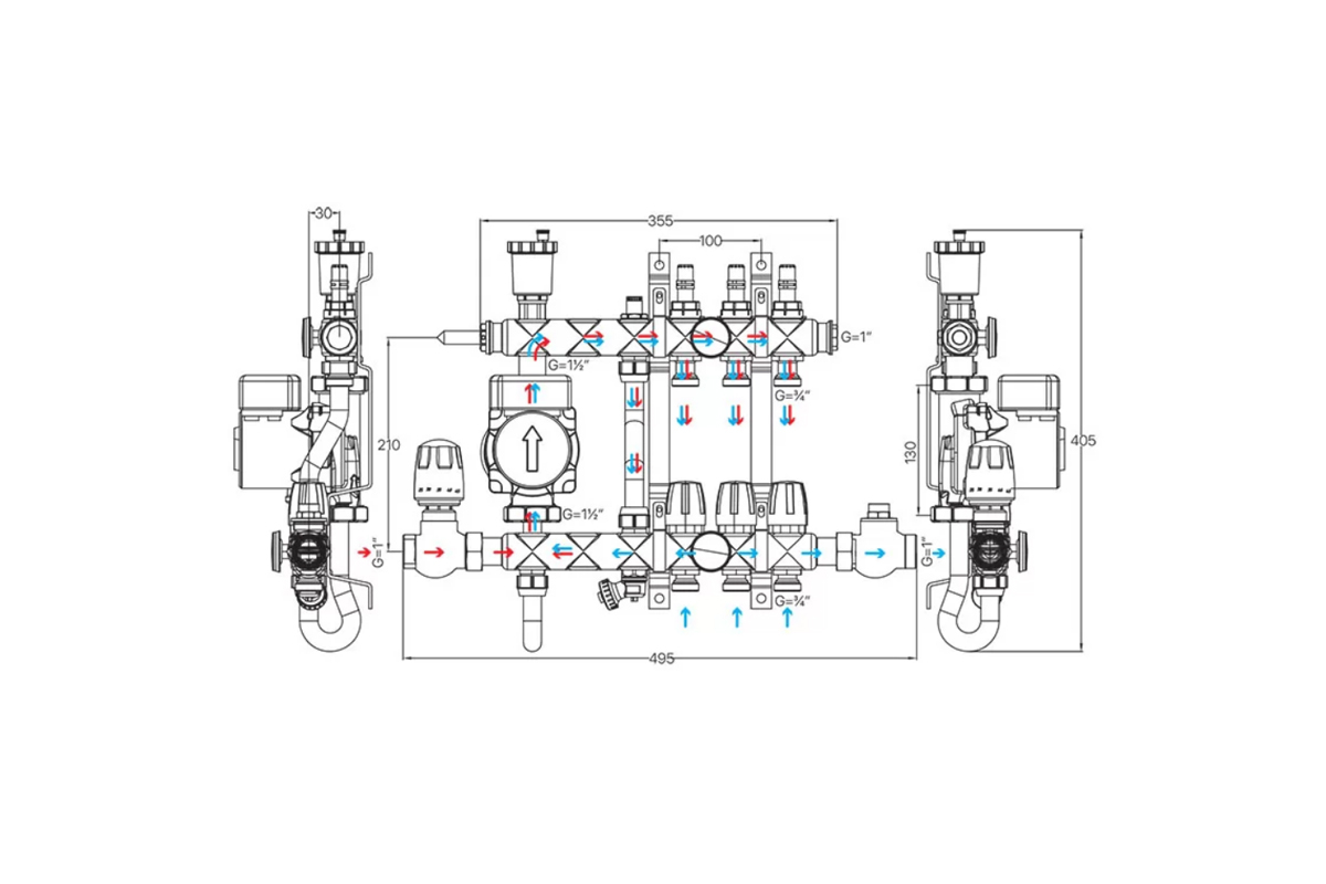 Универсальное подключение слева-справа (для коллекторов и смесительных узлов).