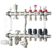 Коллекторный блок служит для распределения потоков по контурам теплого пола, радиаторного отопления, прочих климатических систем, где в качестве теплоносителя используется вода либо незамерзающие растворы гликоля.