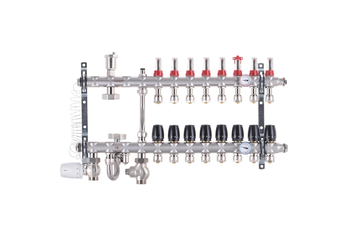 Арматура коллектора KOER изготовлена из высококачественной сантехнической латуни CW617N с никелевым покрытием.