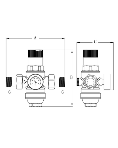 Клапан понижения давления горячей KOR KR.1241 с осевым манометром на 10 bar служит для уменьшения избыточного давления воды, других неагриссивных жидкостей, а также сжатого воздуха, азота в трубопроводе.