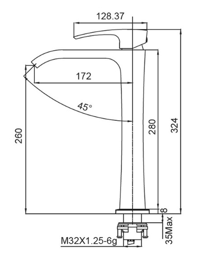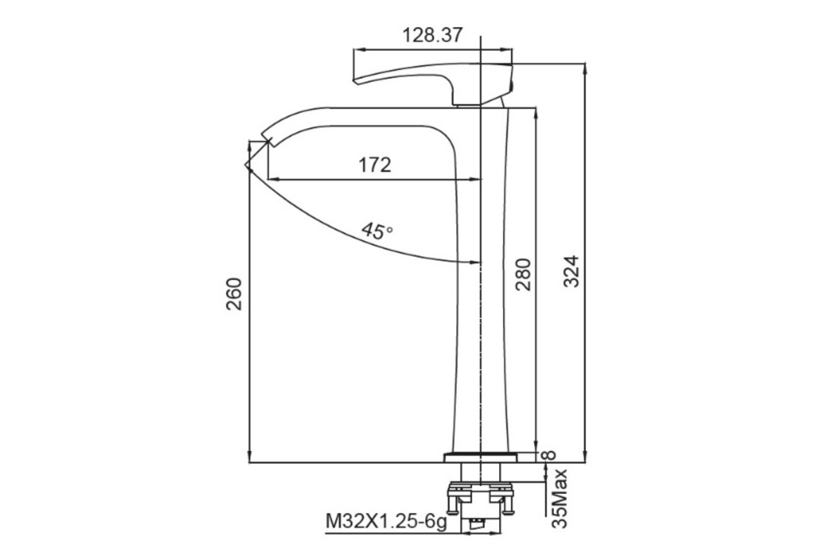 Высота до излива, мм 260