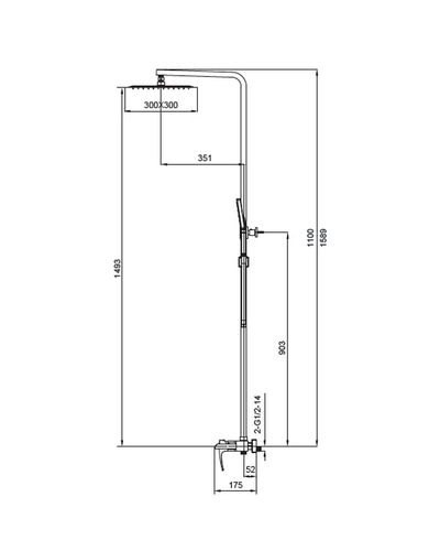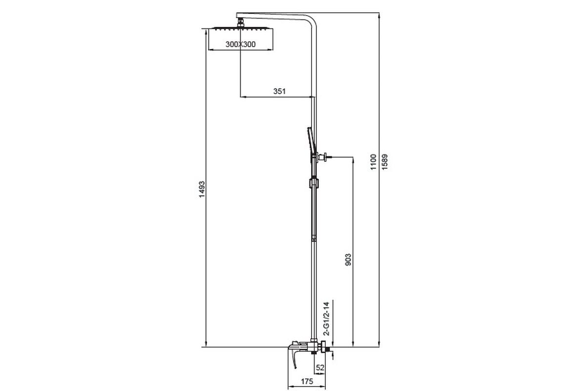 Комплектация Шланг 150 см, ручная лейка, потолочная лейка 300х300 мм, чашки, эксцентрики, резиновые прокладки, держатель для лейки