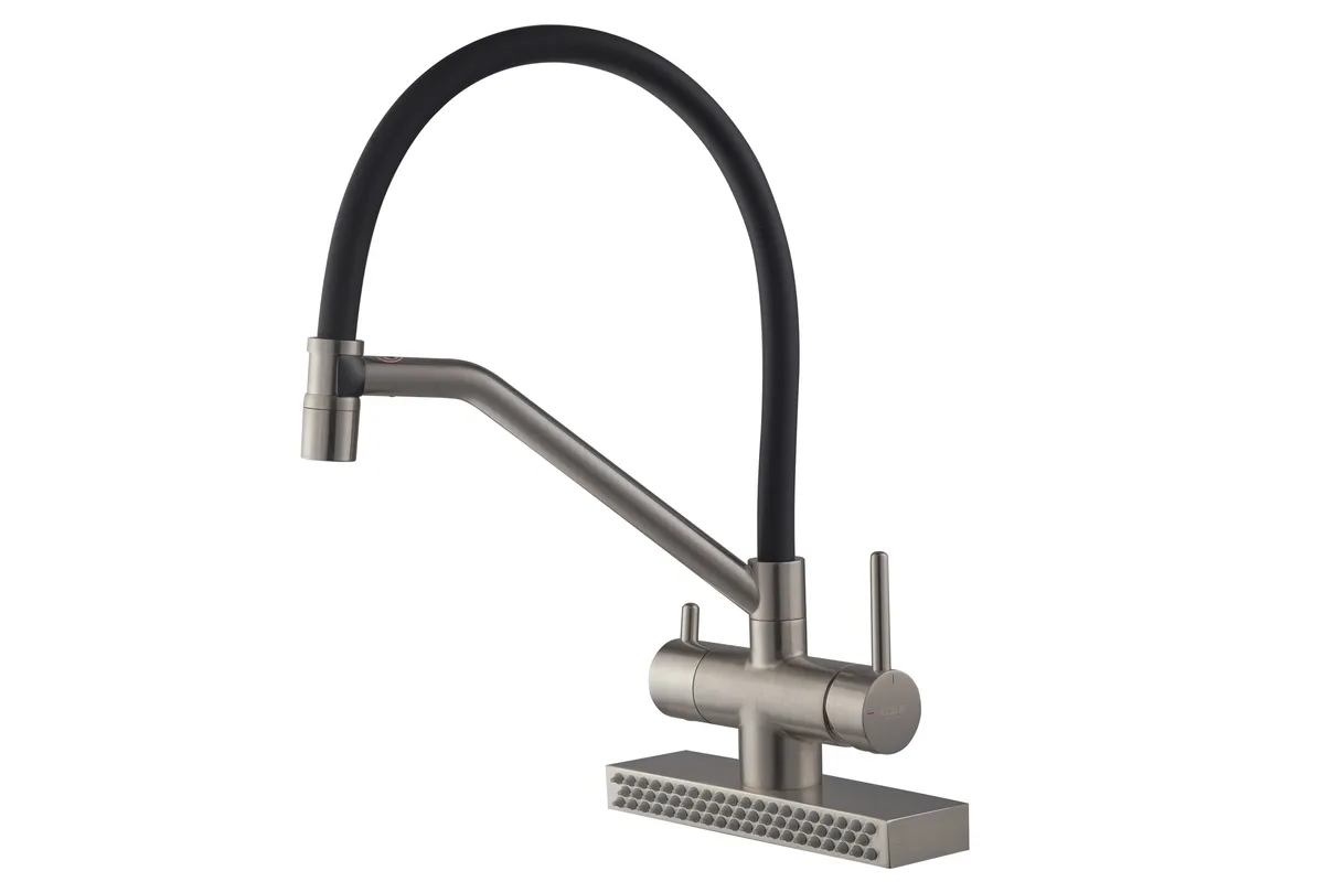 Смеситель для кухни Koer KB-74027-02 с функцией "водопад" и черным силиконовым изливом (KR5201)