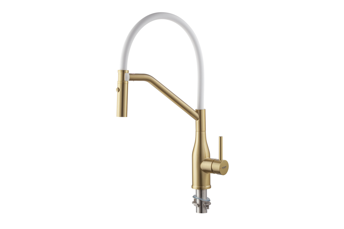 Смеситель для кухни Koer KI-70026-12 с белым силиконовым изливом золото мат (KR5212)