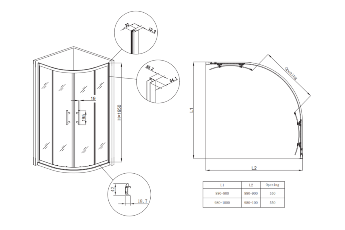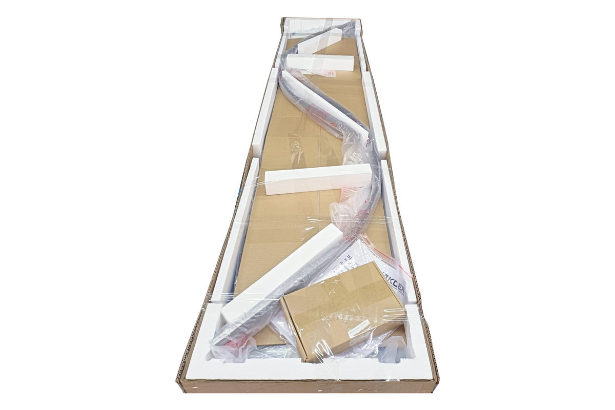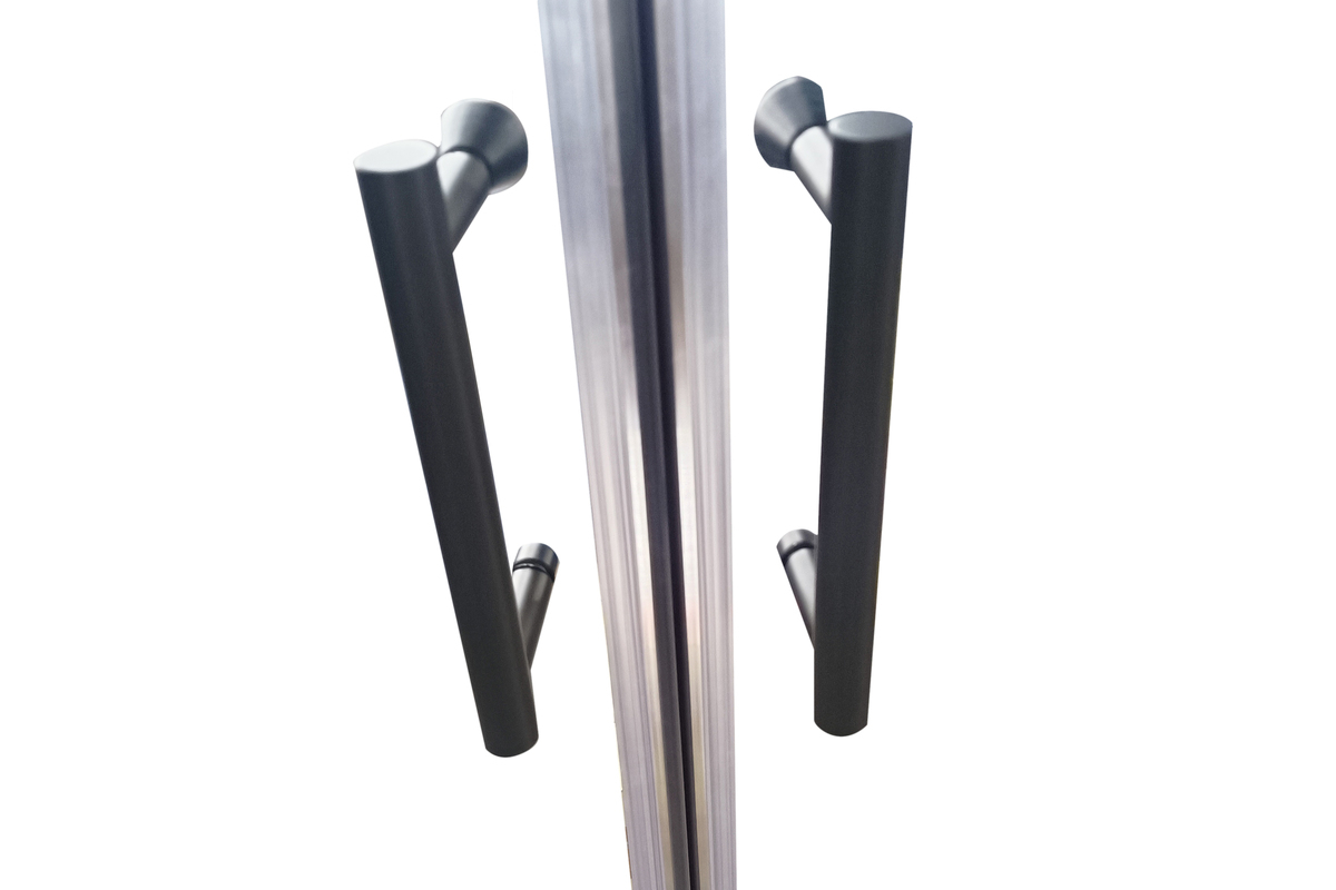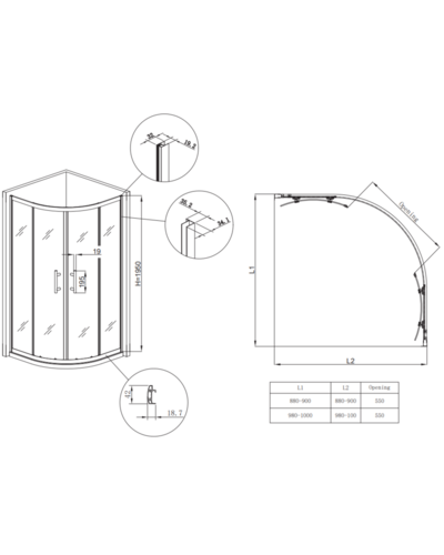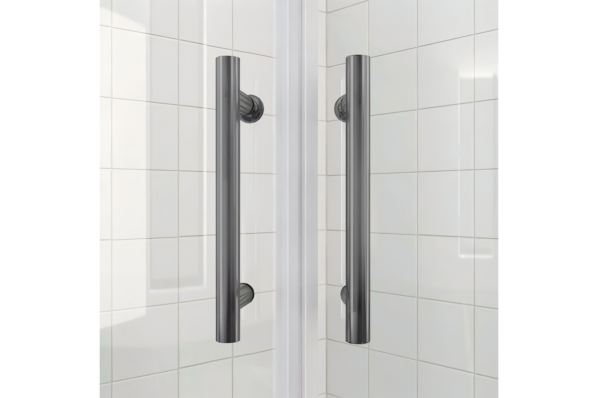 • Глухое стекло - 2, стеклянная дверь - 2, профили, направляющие, 2 ручки, двойные ролики, комплект крепежных деталей, набор уплотнителей, заглушки