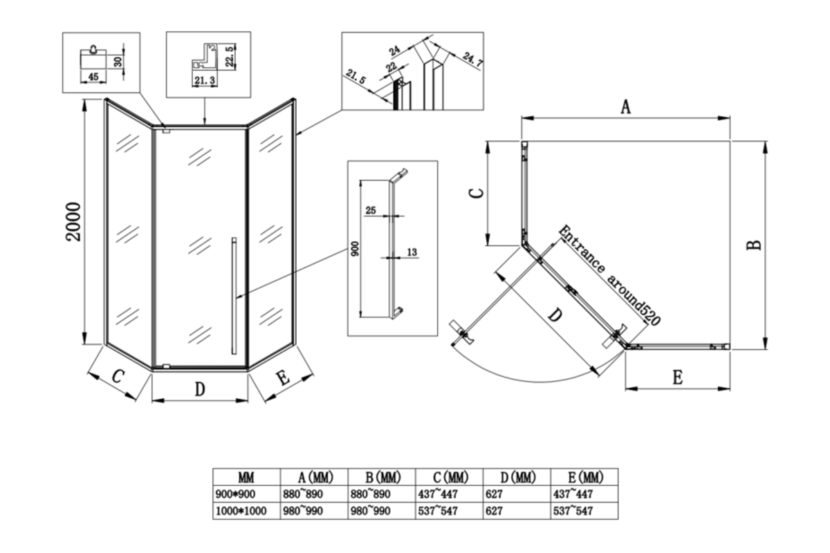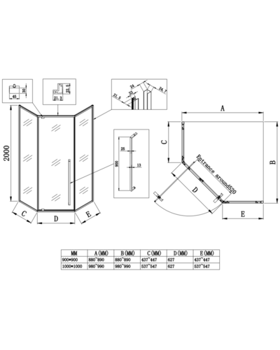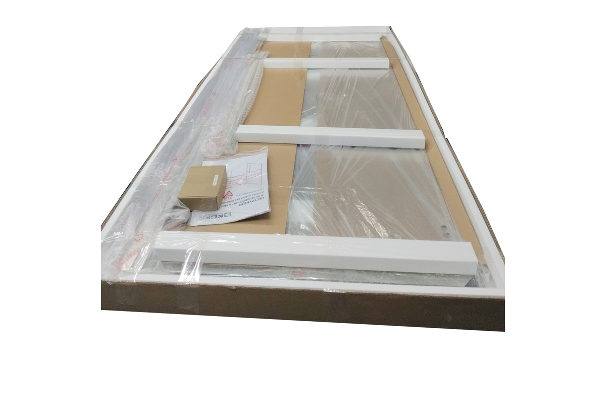 • Фиксированные стеклянные панели - 2, стеклянные двери - 1, профили, ручка, комплект петель, комплект крепежных деталей, уплотнительный набор, заглушки