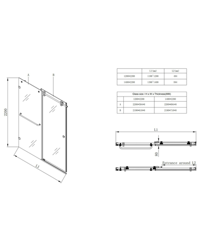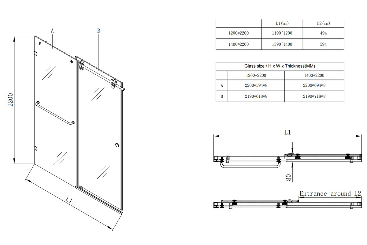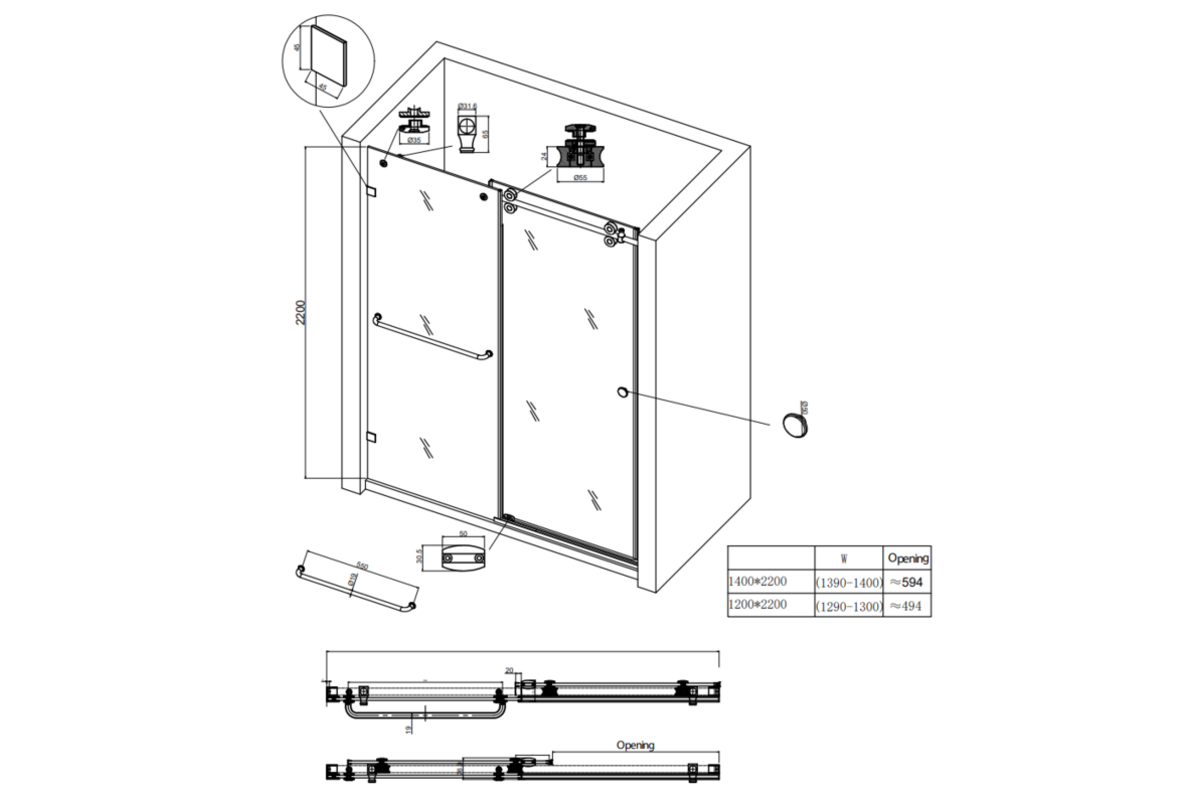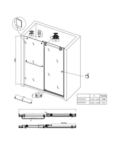 • Глухое стекло, стеклянная дверь, настенный зажим, верхняя рейка, нижняя водонепроницаемая планка, 2 ручки, верхние ролики, система нижних ползунов, комплект крепежных деталей, набор уплотнителей, заглушки.
