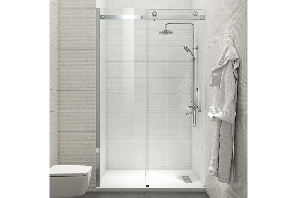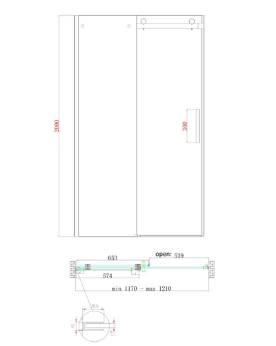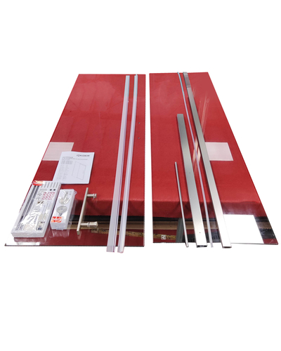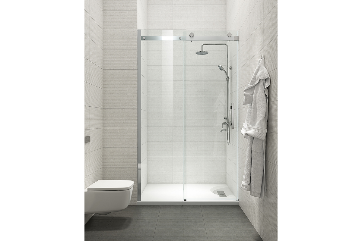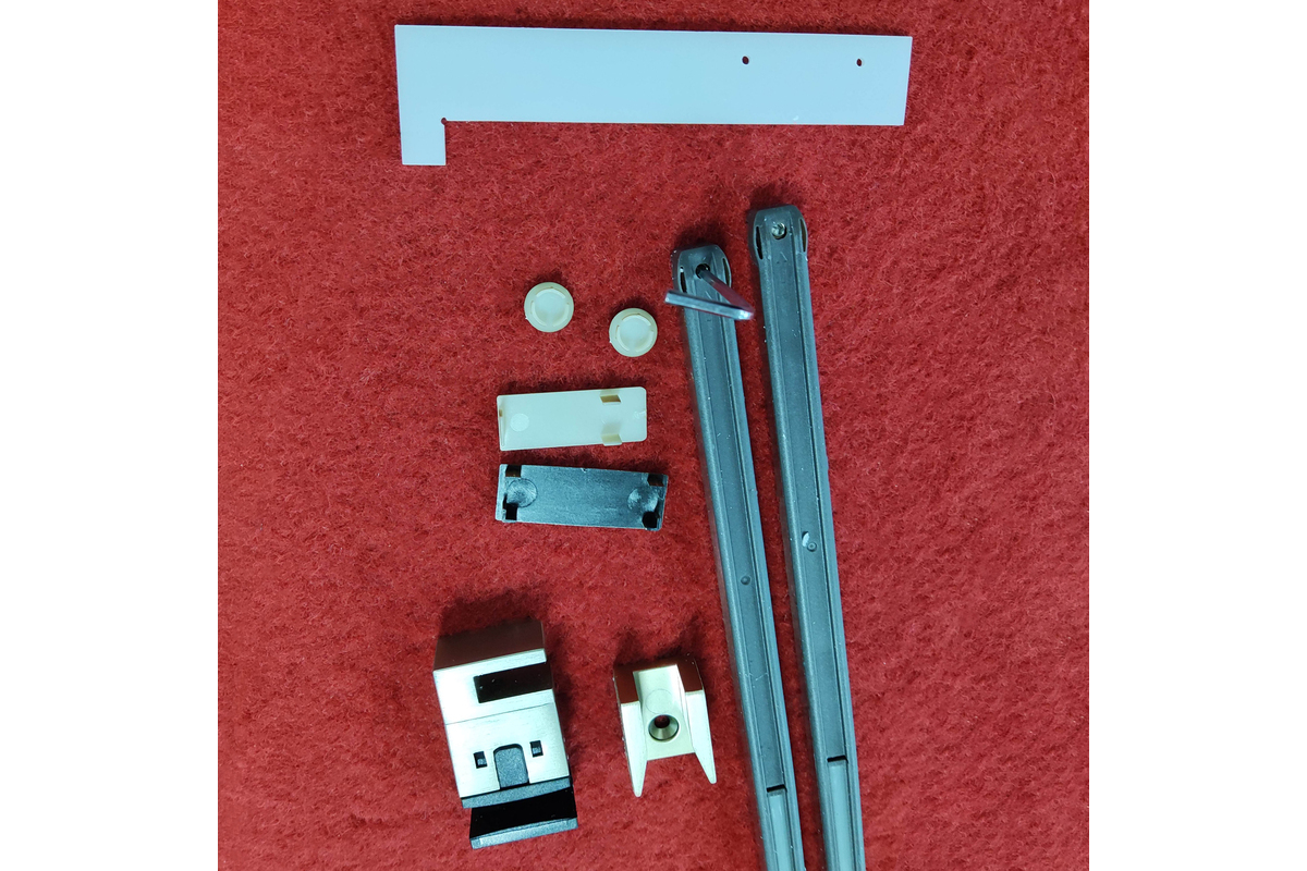 • Глухое стекло, стеклянная дверь, профиль, верхняя рейка, нижняя алюминиевая водонепроницаемая планка, ручка, верхние ролики, система нижних ползунов, комплект крепежных деталей, набор уплотнителей, заглушки