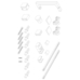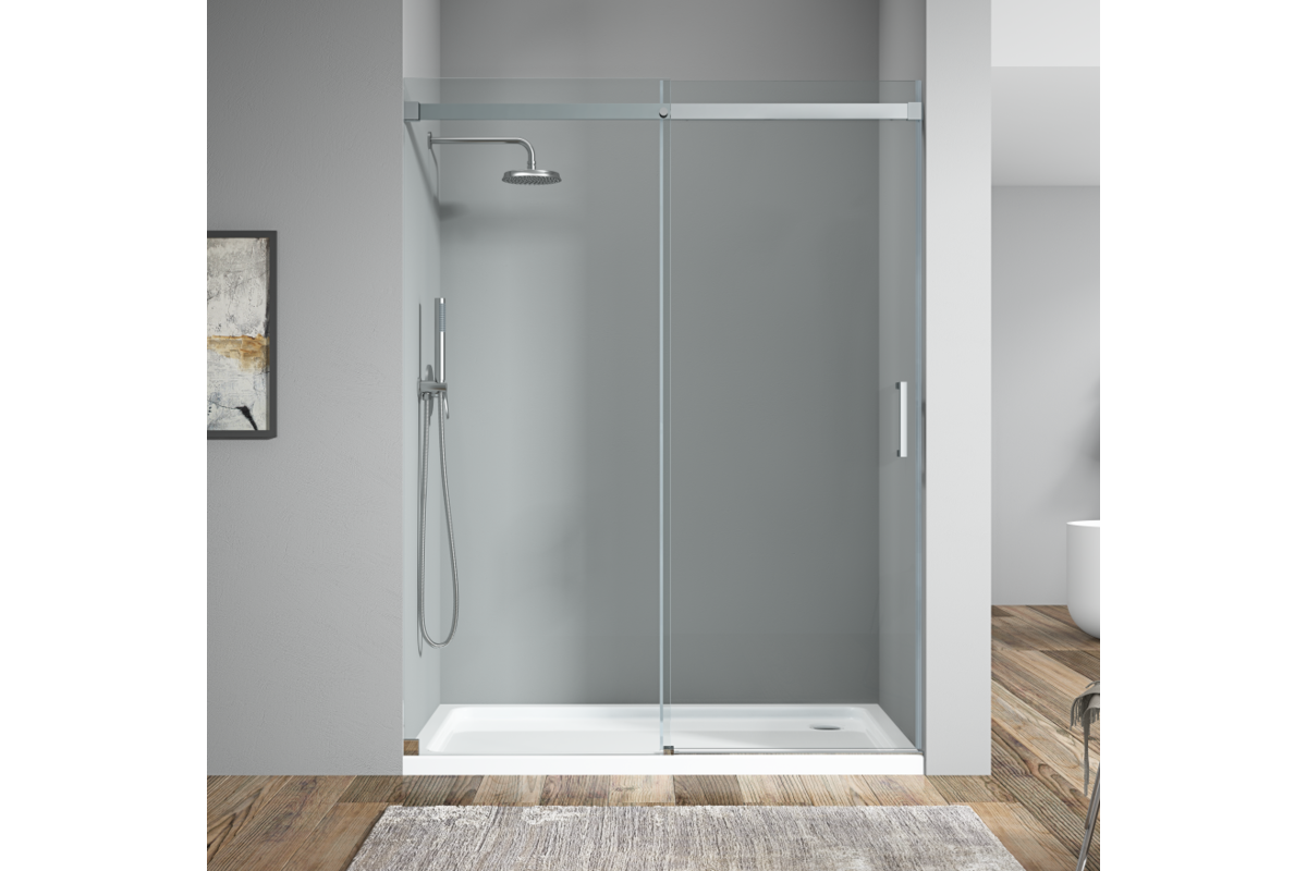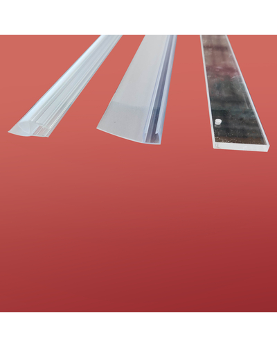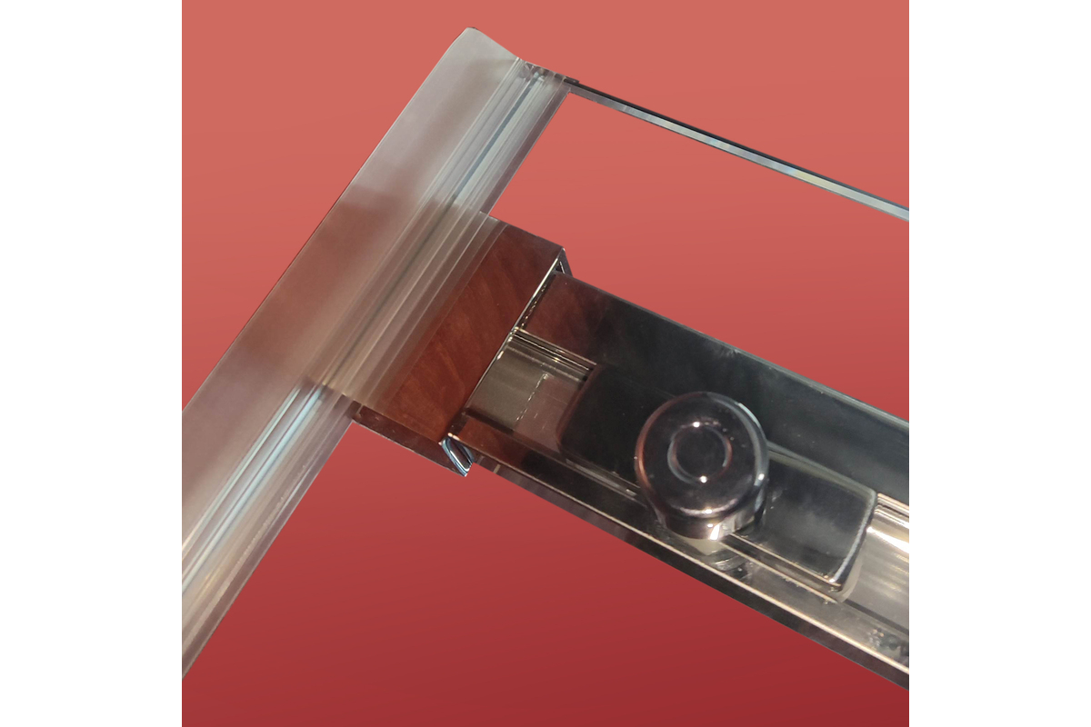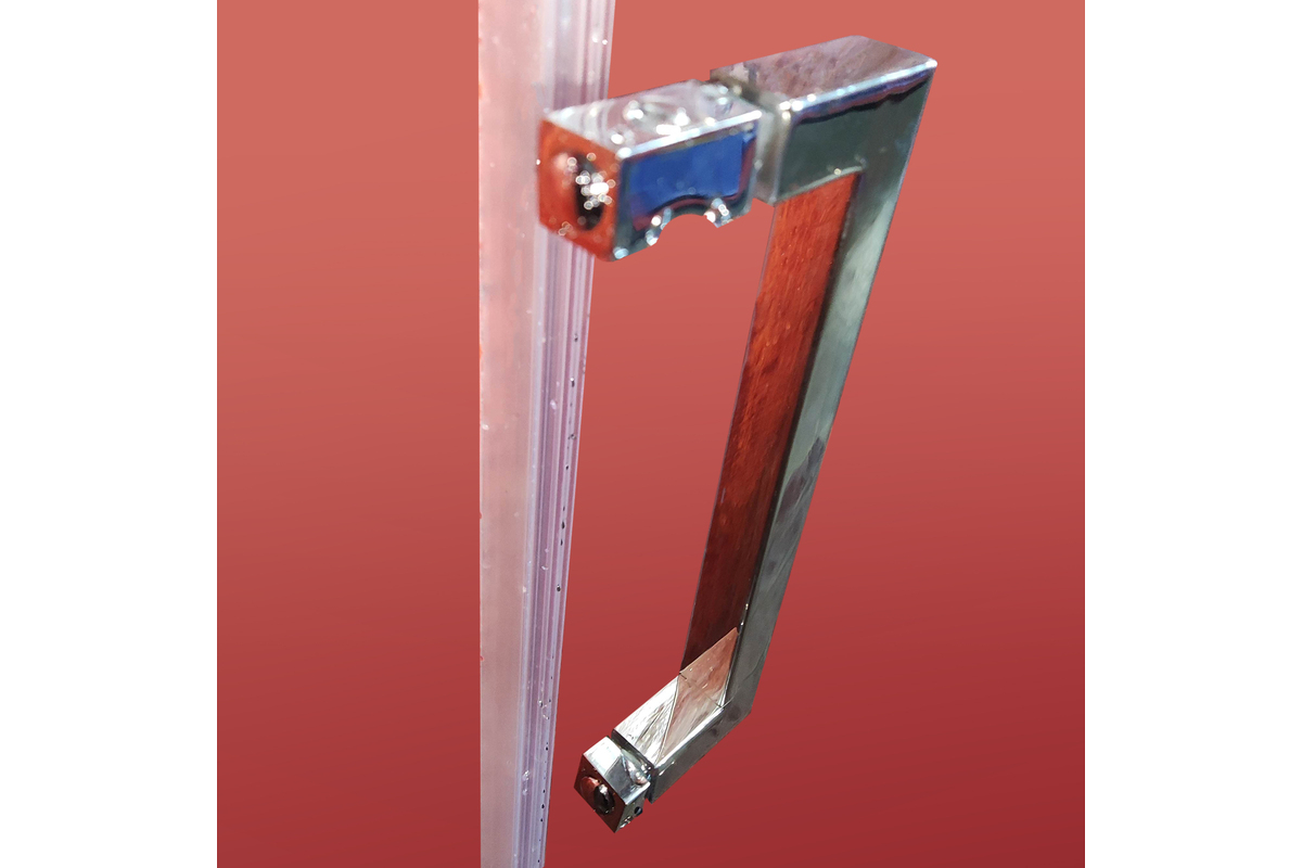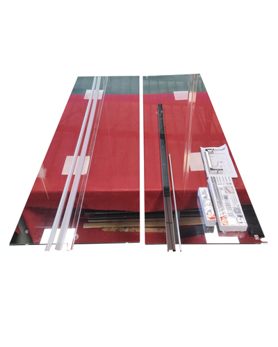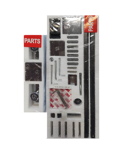 • Глухое стекло, стеклянная реверсивная дверь, профиль, верхняя рейка, нижняя алюминиевая водонепроницаемая планка, ручка, верхние ролики, система нижних ползунов, комплект крепежных деталей, набор уплотнителей, заглушки.