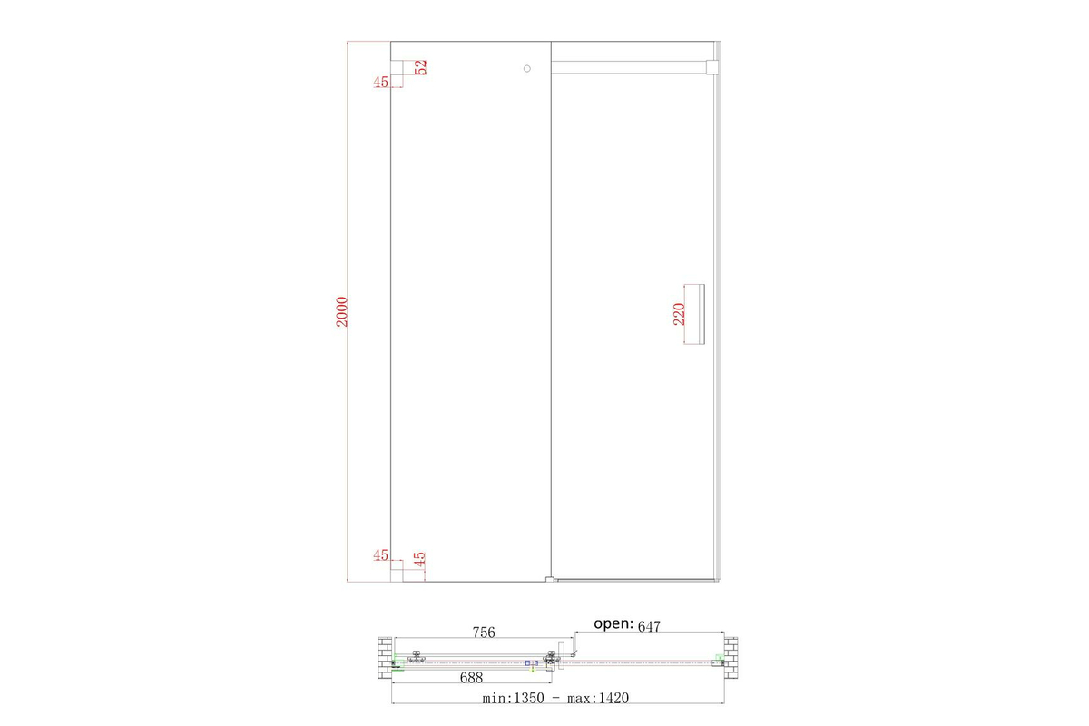Дверь в нишу Koer SR SD02-140x200-TR-01 прозрачное стекло Easy Clean 8мм хром (KR5383)