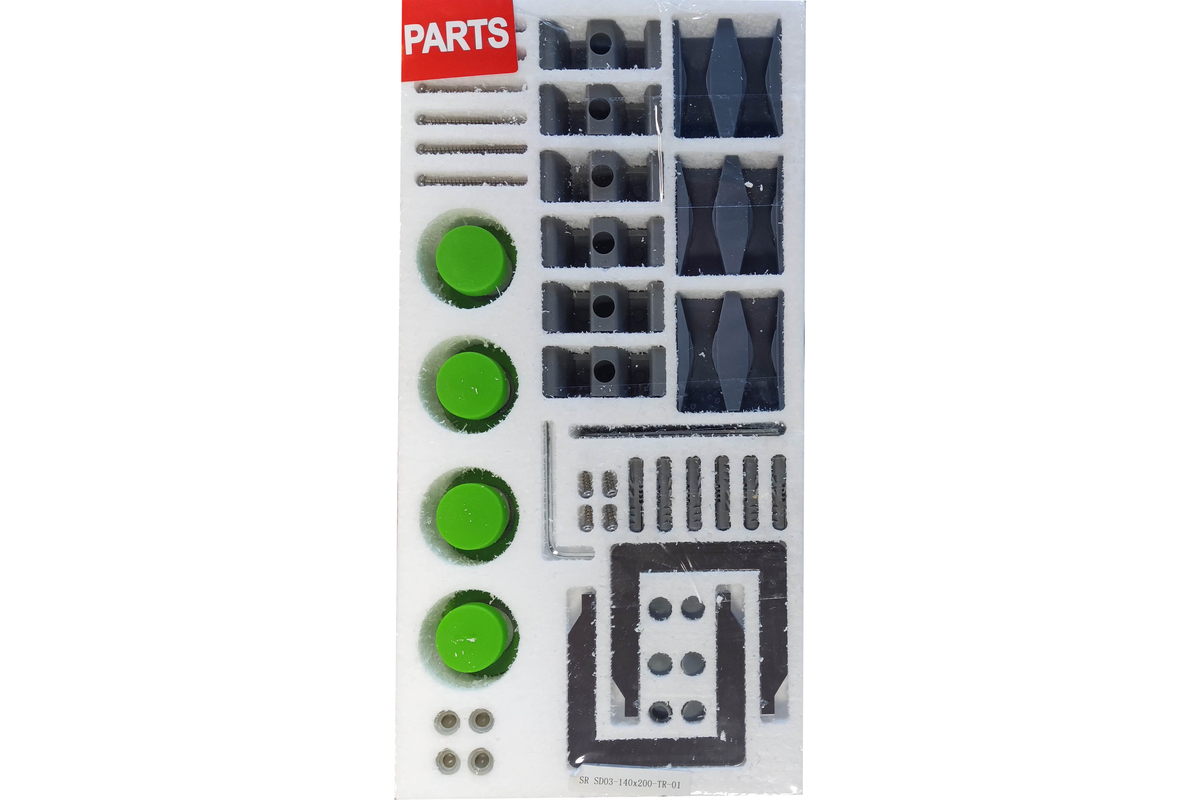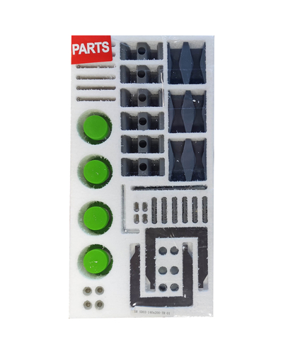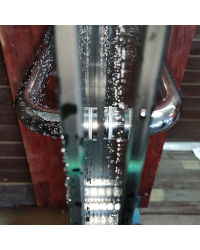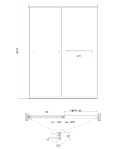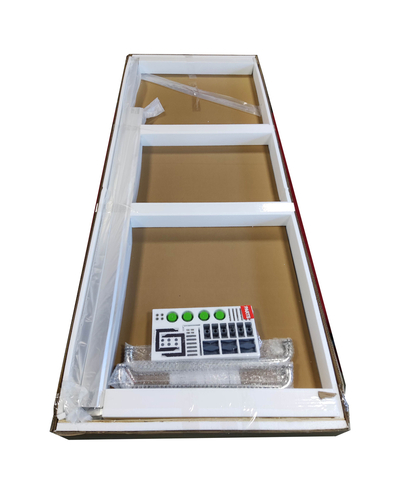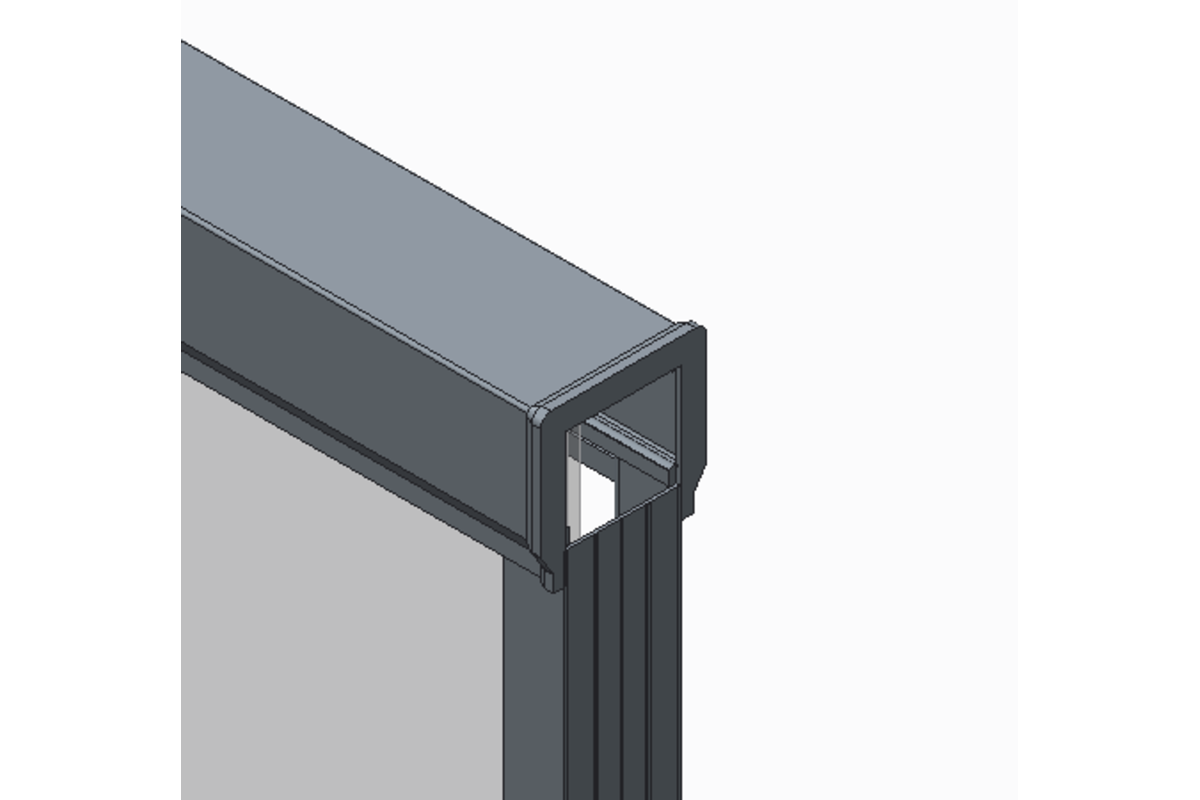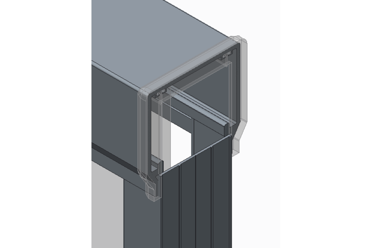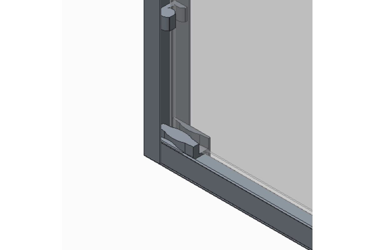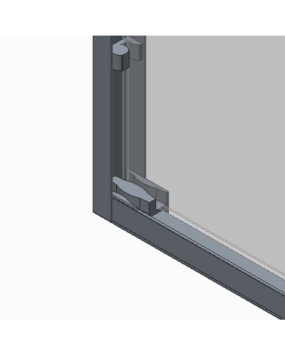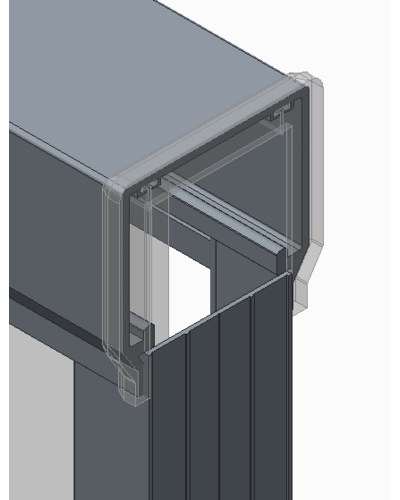 • Две раздвижные стеклянные двери, профили, две ручки, верхние ролики, система нижних ползунов, комплект крепежных деталей, набор уплотнителей, заглушки.