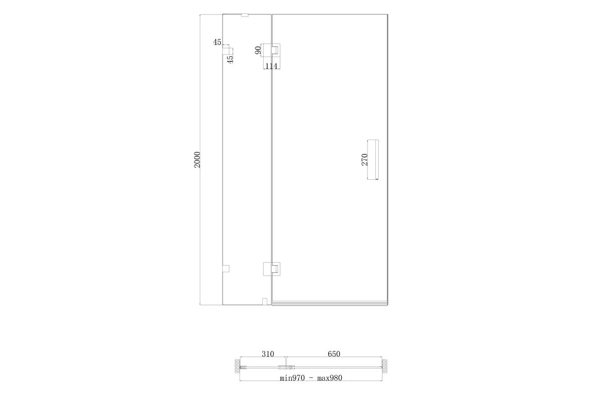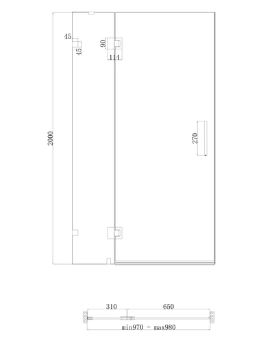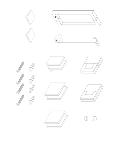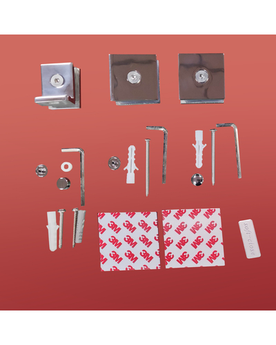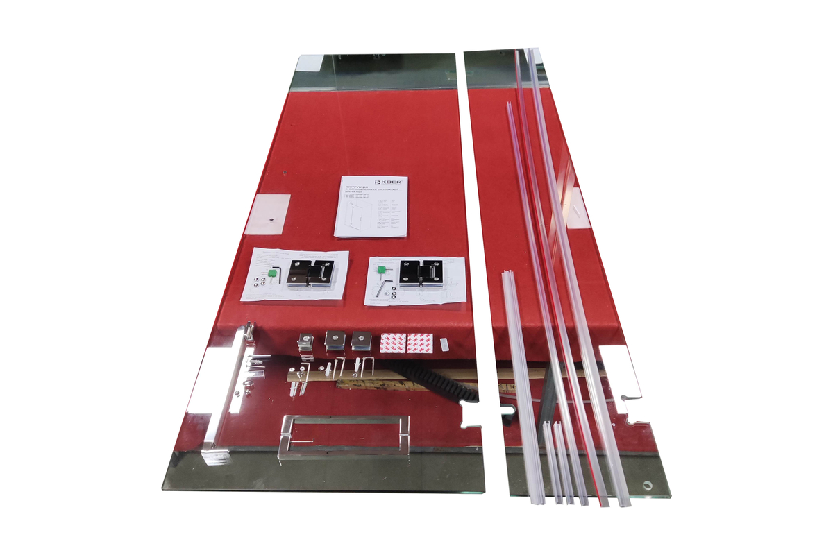 •  Распашная реверсная стеклянная дверь, реверсная фиксированная панель, двойная двусторонняя ручка, опорная планка и настенные хомуты, комплект крепежных деталей, набор уплотнителей, заглушки.