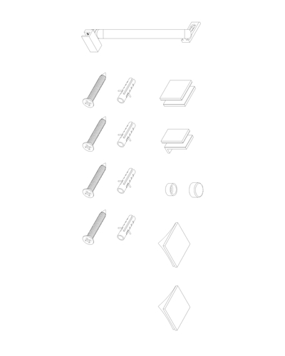 •  Реверсная фиксированная панель, опорная планка и настенные хомуты, комплект крепежных деталей, уплотнительный набор, заглушки.