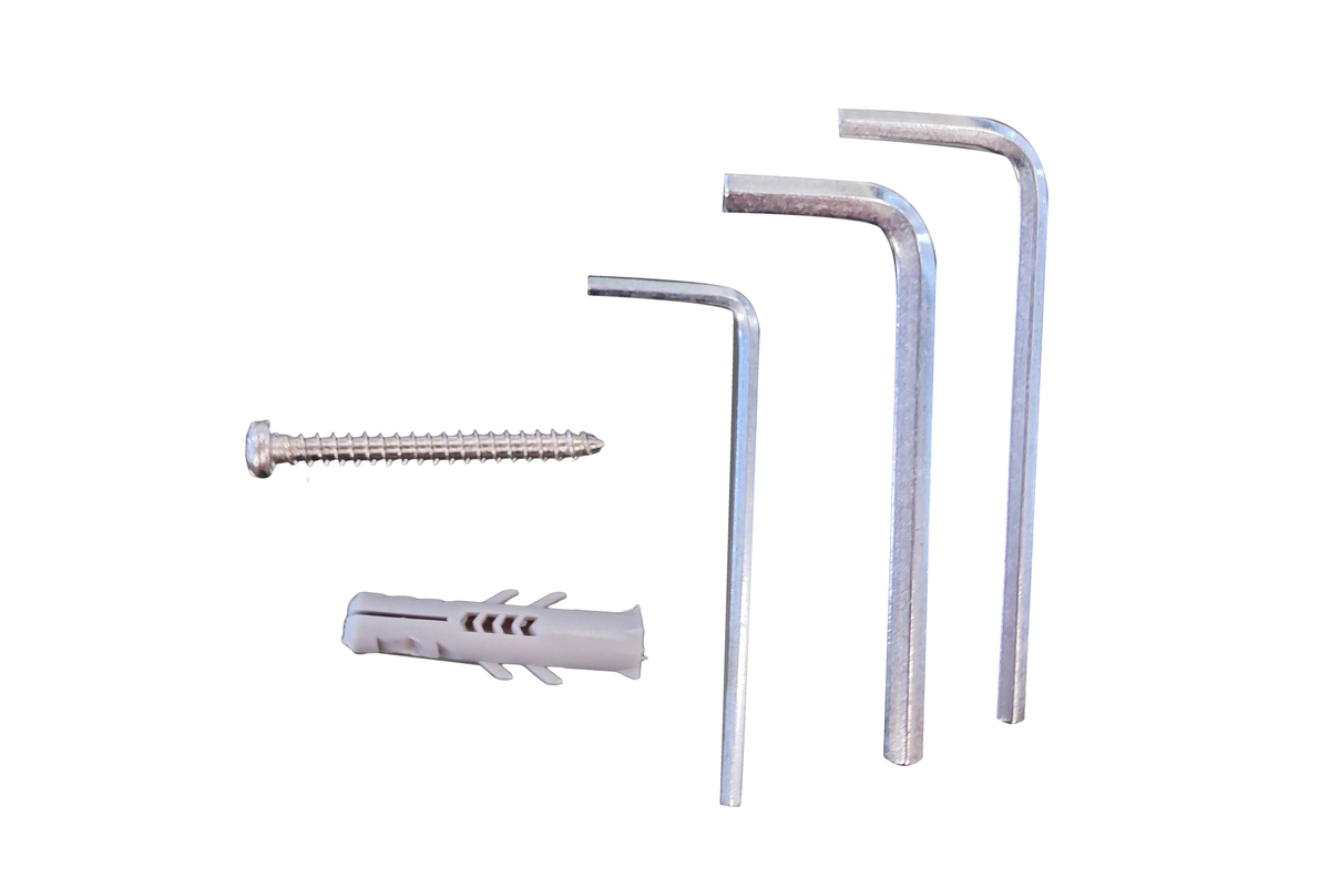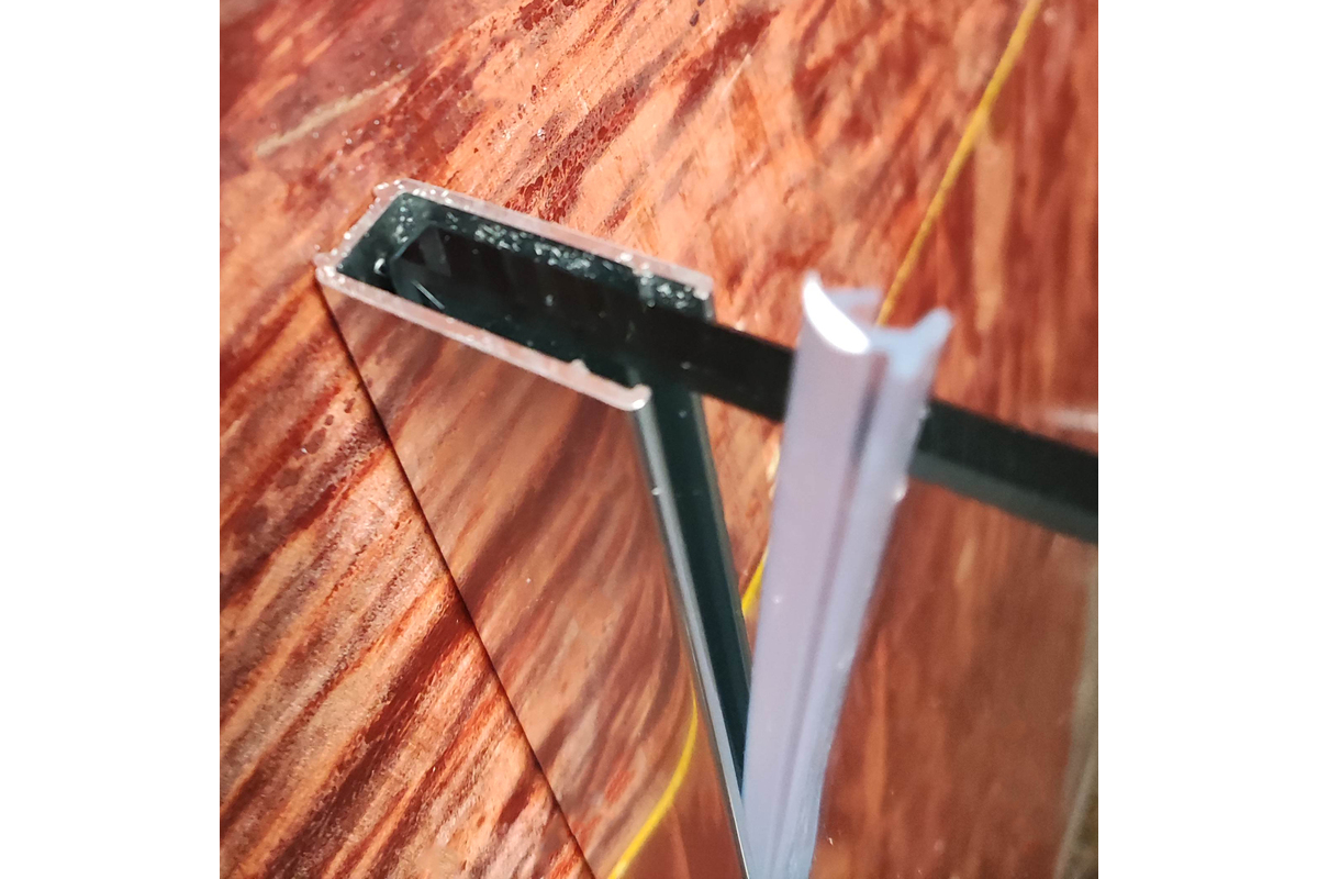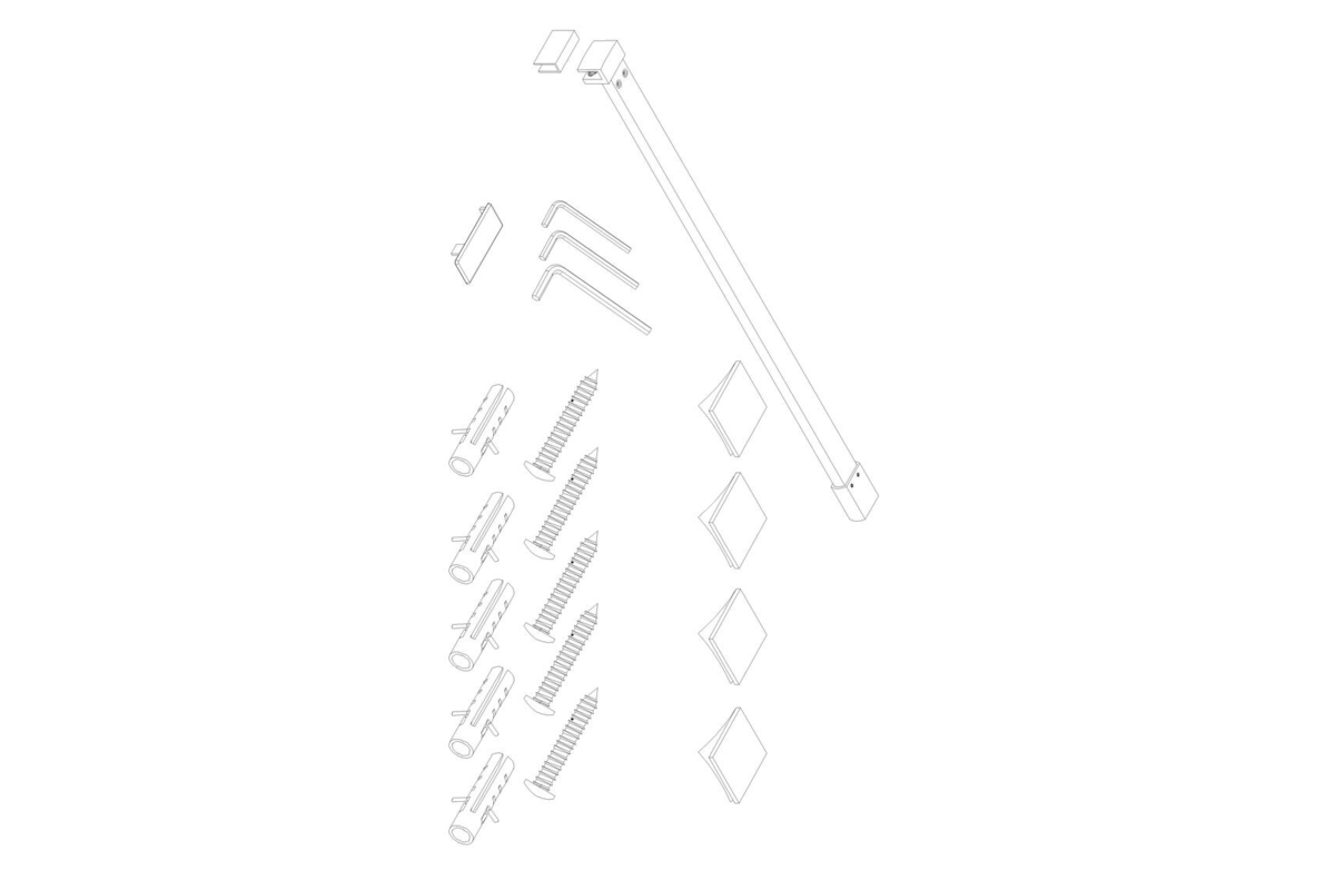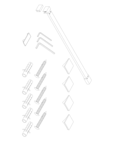 • Профиль, опорная планка, фиксированное стекло, комплект креплений, уплотнительный набор, заглушки.