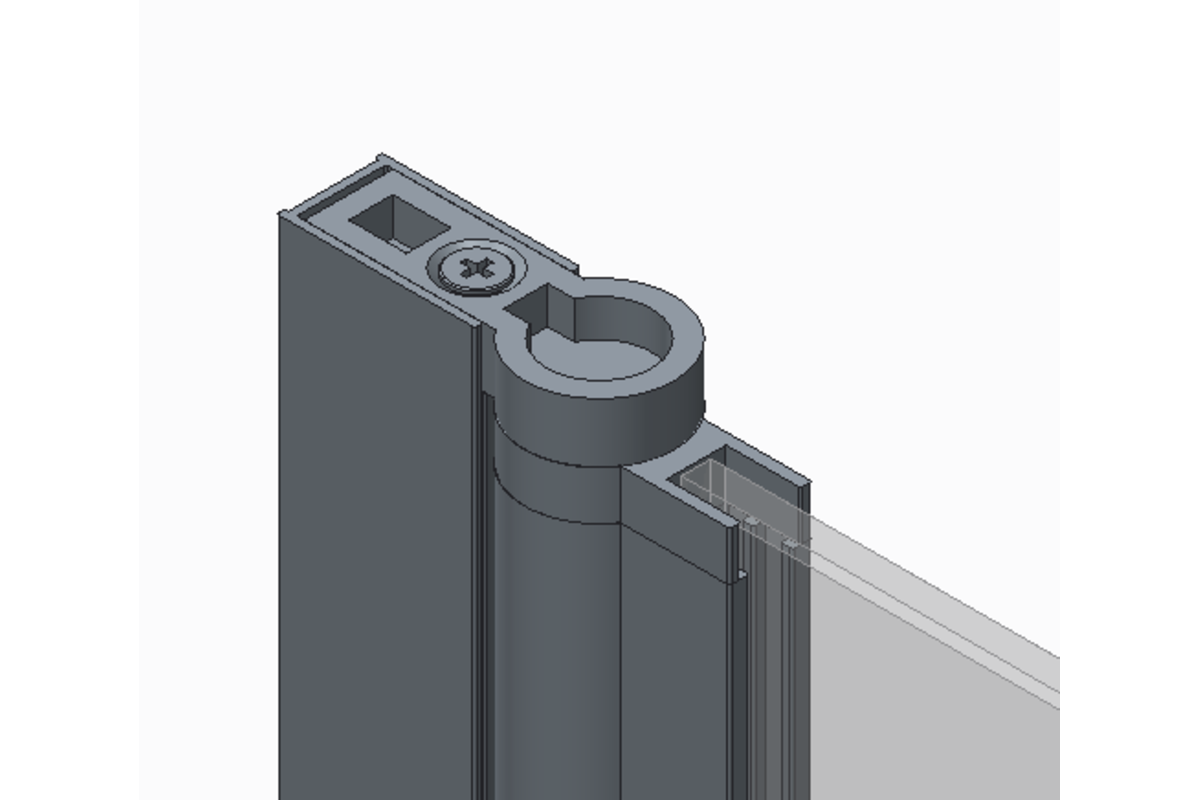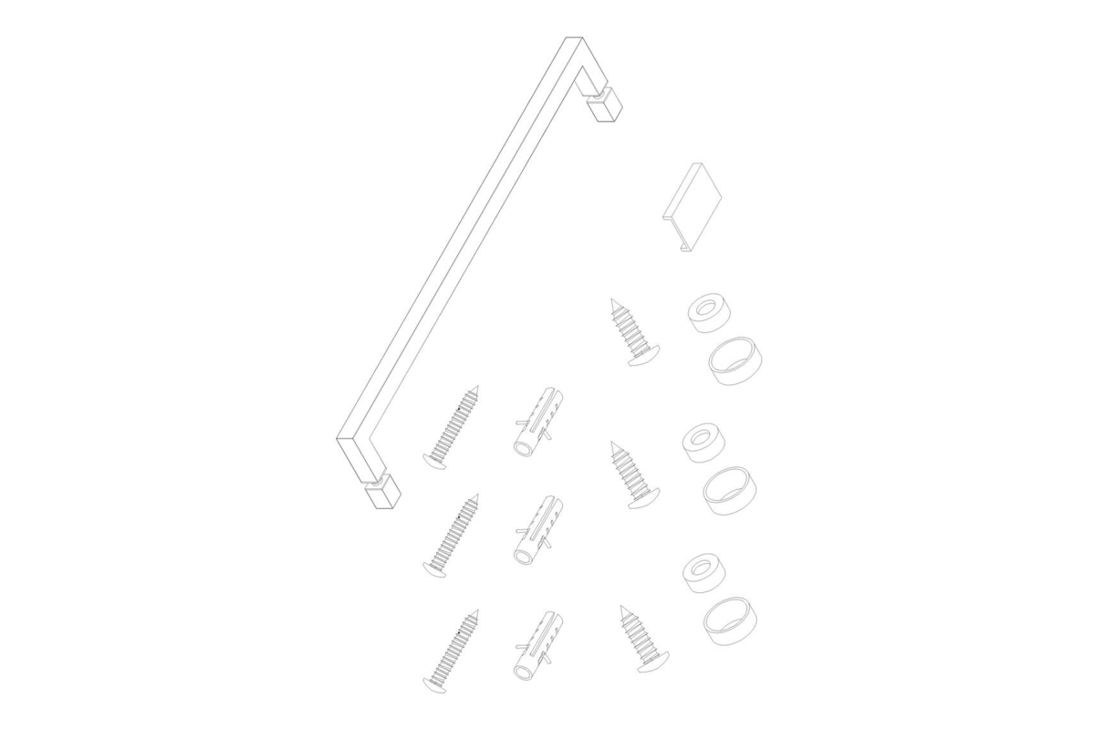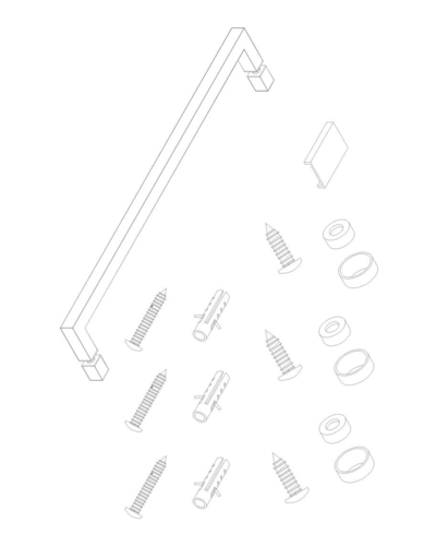 • Профили, поворотная стеклянная панель, ручка, комплект креплений, уплотнительный набор, заглушки.