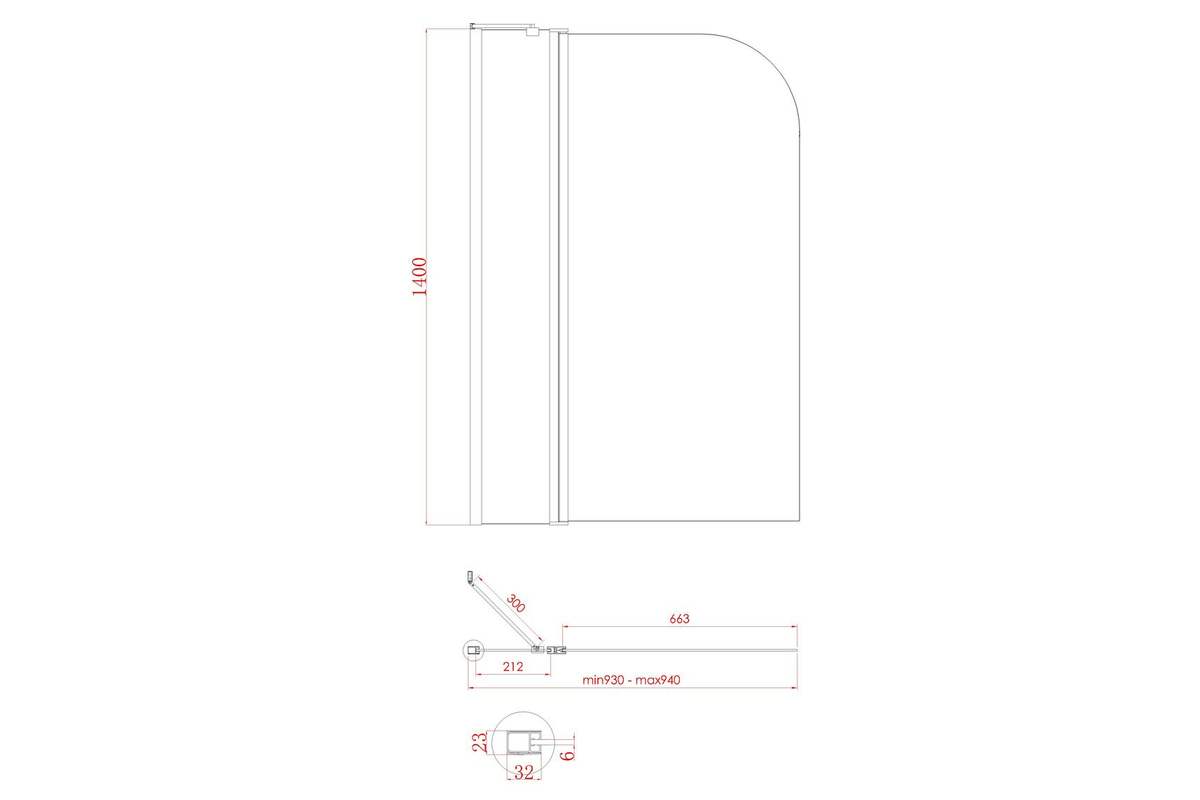 Шторки стеклянные на ванну Koer SR BS03-95x140-TR-01 прозрачное стекло 6мм, хром (KR5402)