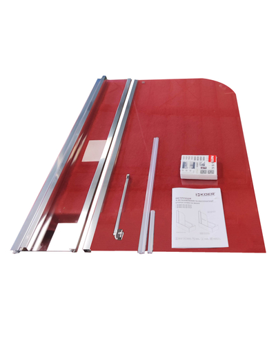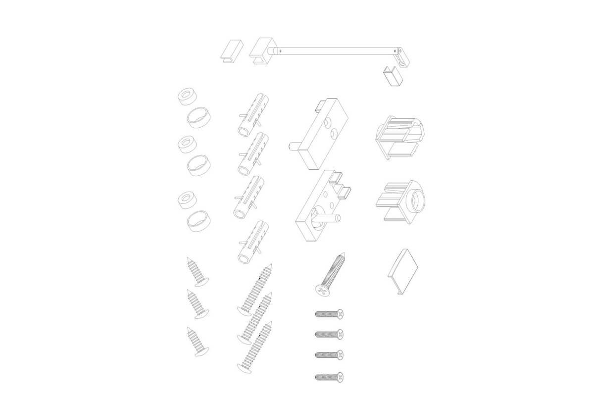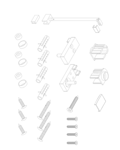 • Профили, опорная планка, фиксированная и поворотная стеклянная панель, комплект креплений, уплотнительный набор, заглушки.