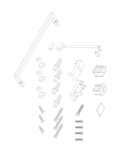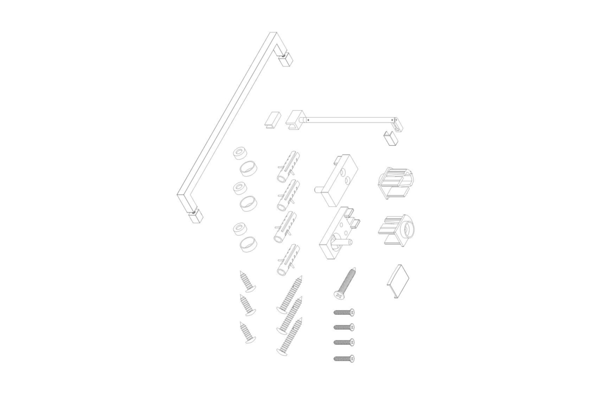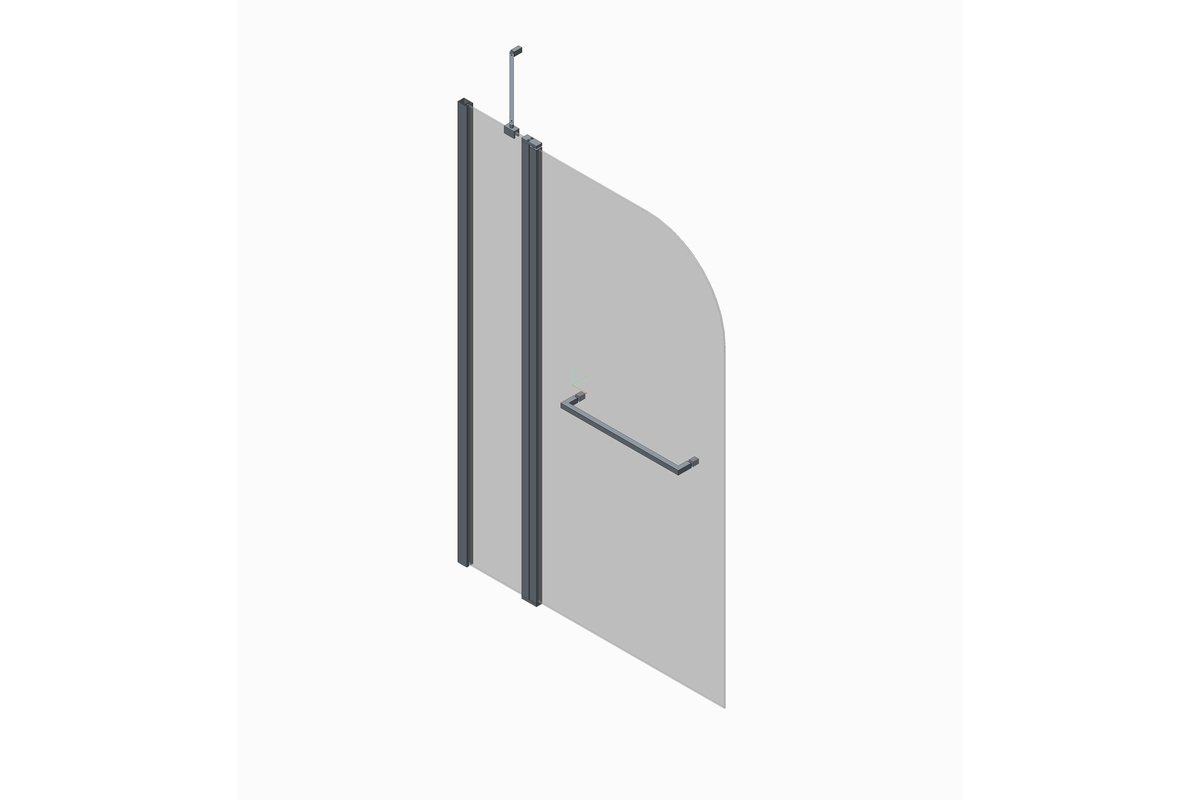 • Профили, опорная планка, фиксированная и поворотная стеклянная панель, ручка, комплект креплений, уплотнительный набор, заглушки.
