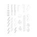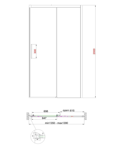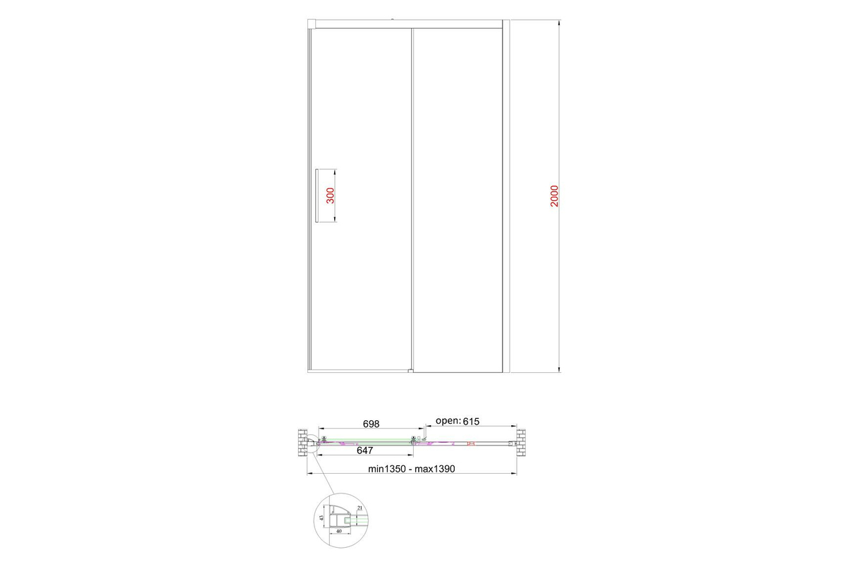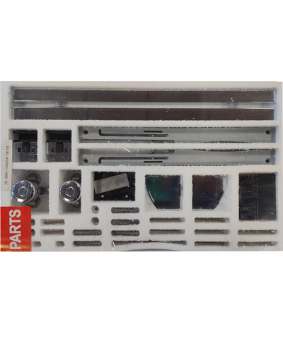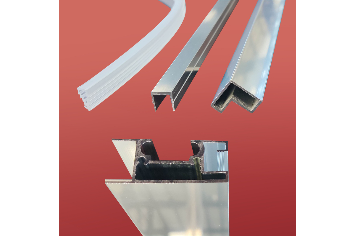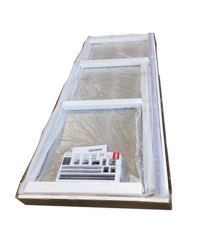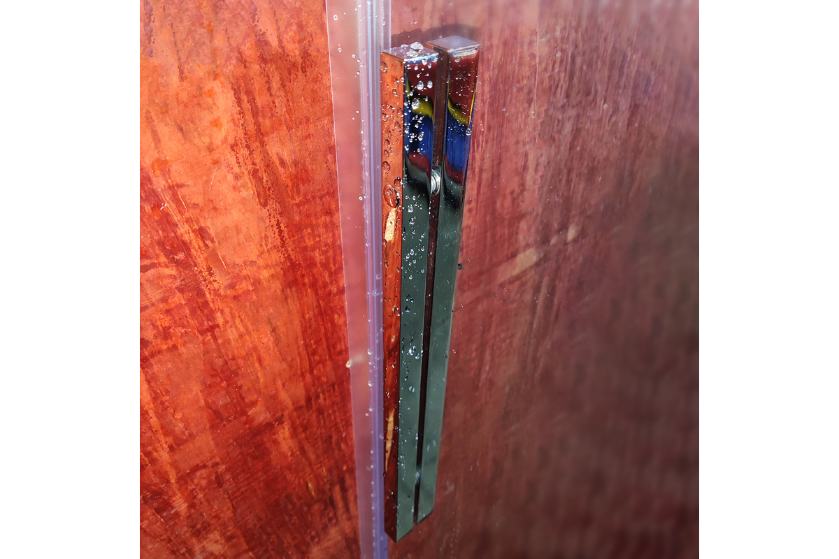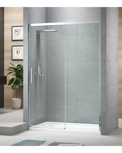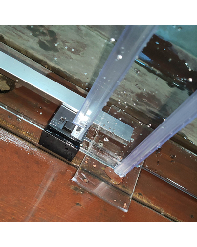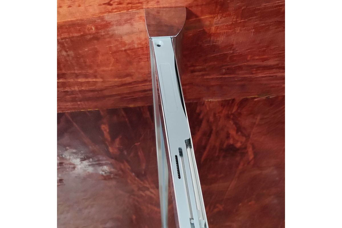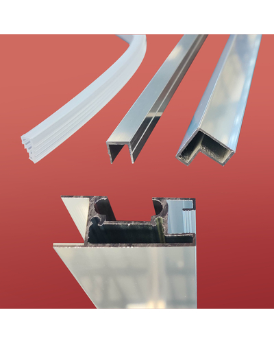 • Глухое стекло, стеклянная реверсивная дверь, профили, нижняя алюминиевая водонепроницаемая планка, двойная ручка, верхние ролики, система нижних ползунов, комплект крепежных деталей, набор уплотнителей, заглушки