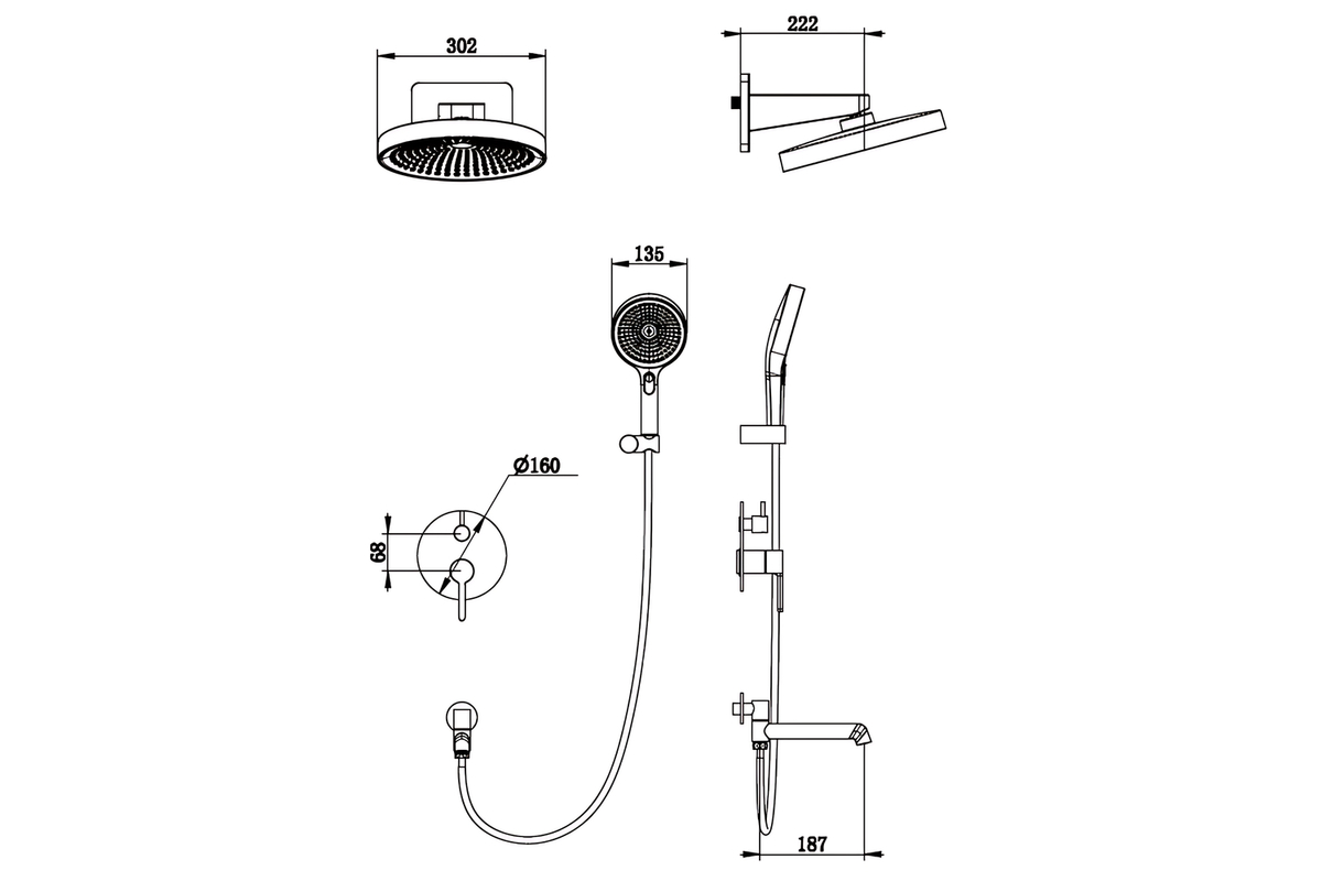Особенности Диаметр потолочной лейки 302 мм. Диаметр ручной лейки 135 мм.