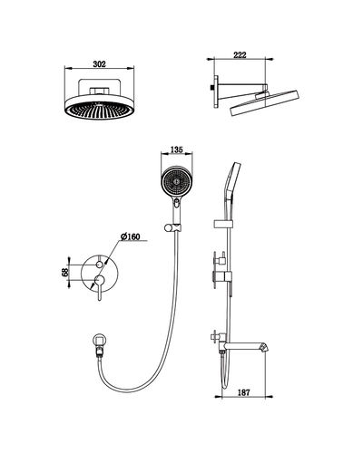 Особенности Диаметр потолочной лейки 302 мм. Диаметр ручной лейки 135 мм.