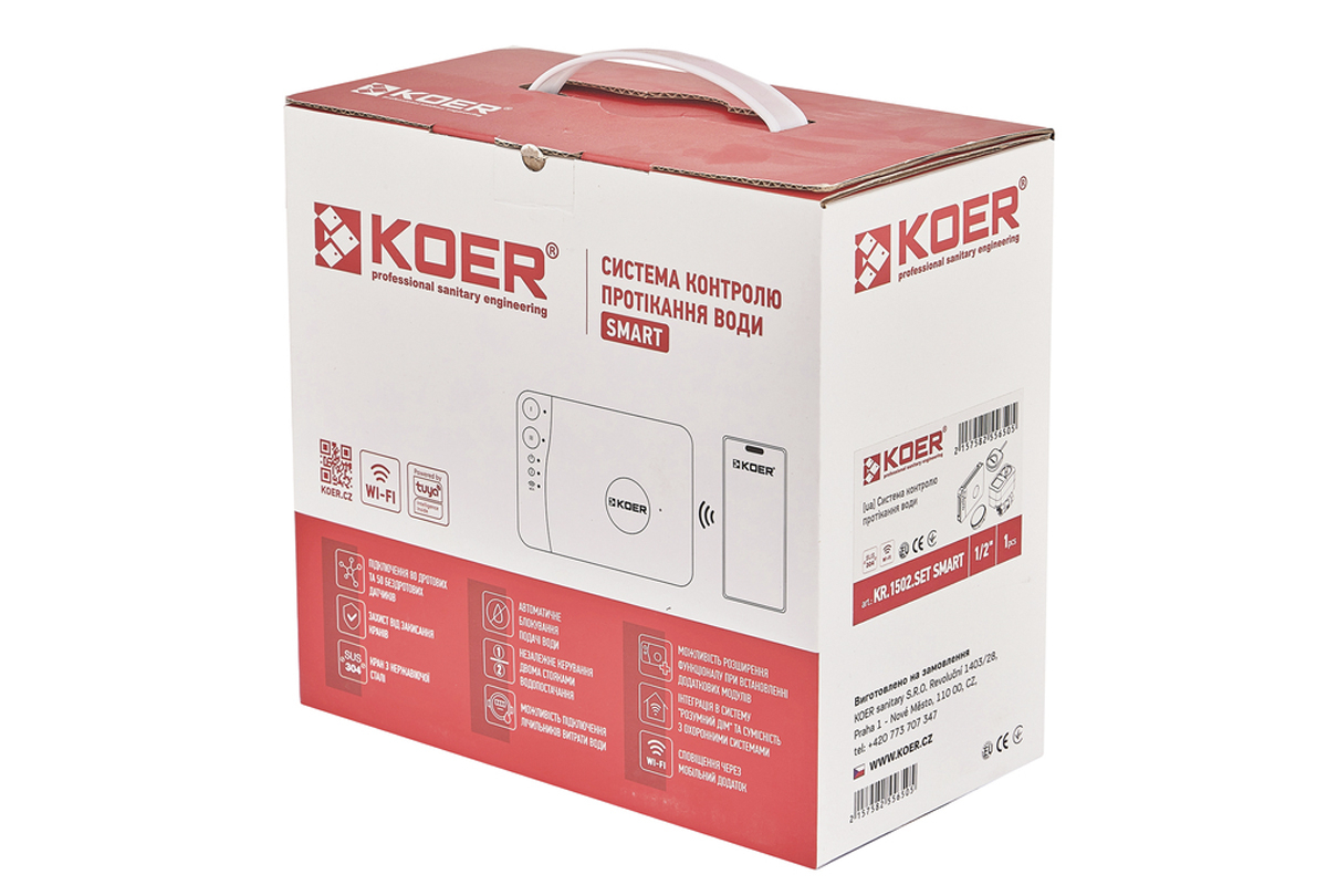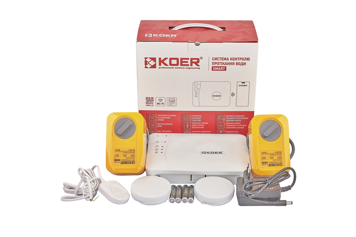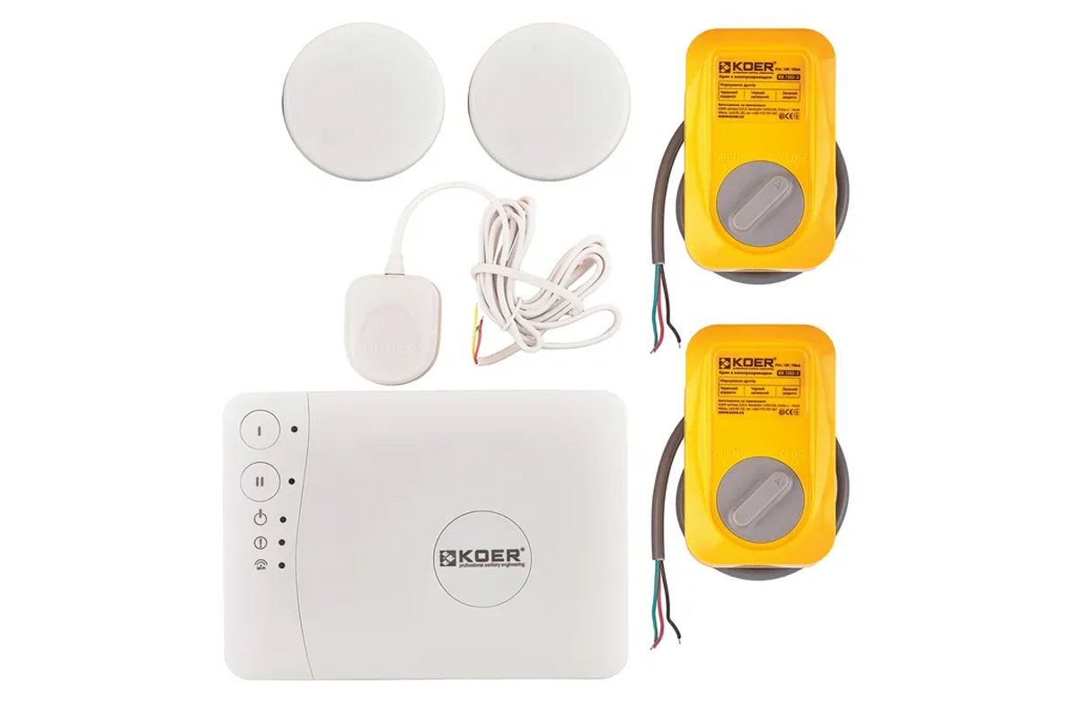 Система антизатопления Koer предназначена для своевременного обнаружения и локализации протеканий воды в системах водоснабжения и отопления. Система заблокирует подачу воды для устранения причин протекания и информирует об аварии звуковыми сигналами.