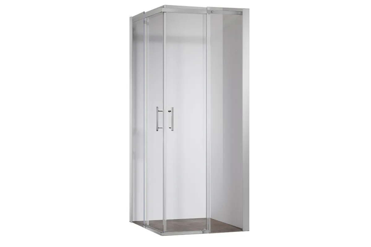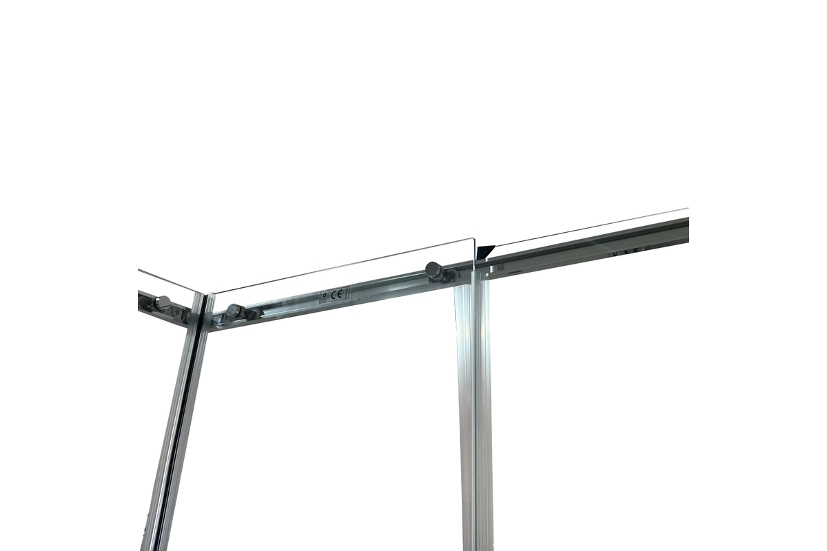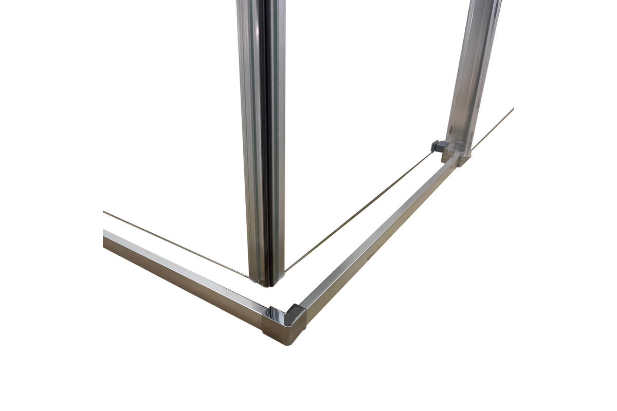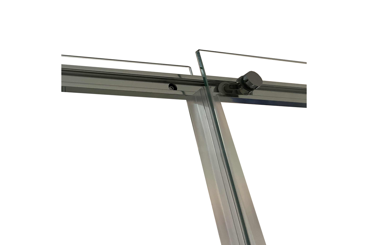 Упаковка 1/1. Глухое стекло -2, стеклянная дверь -2, профили, верхняя направляющая планка, нижние водонепроницаемые планки, 2 ручки, верхние ролики, система нижних ползунов, комплект крепежных деталей, набор уплотнителей, заглушки.