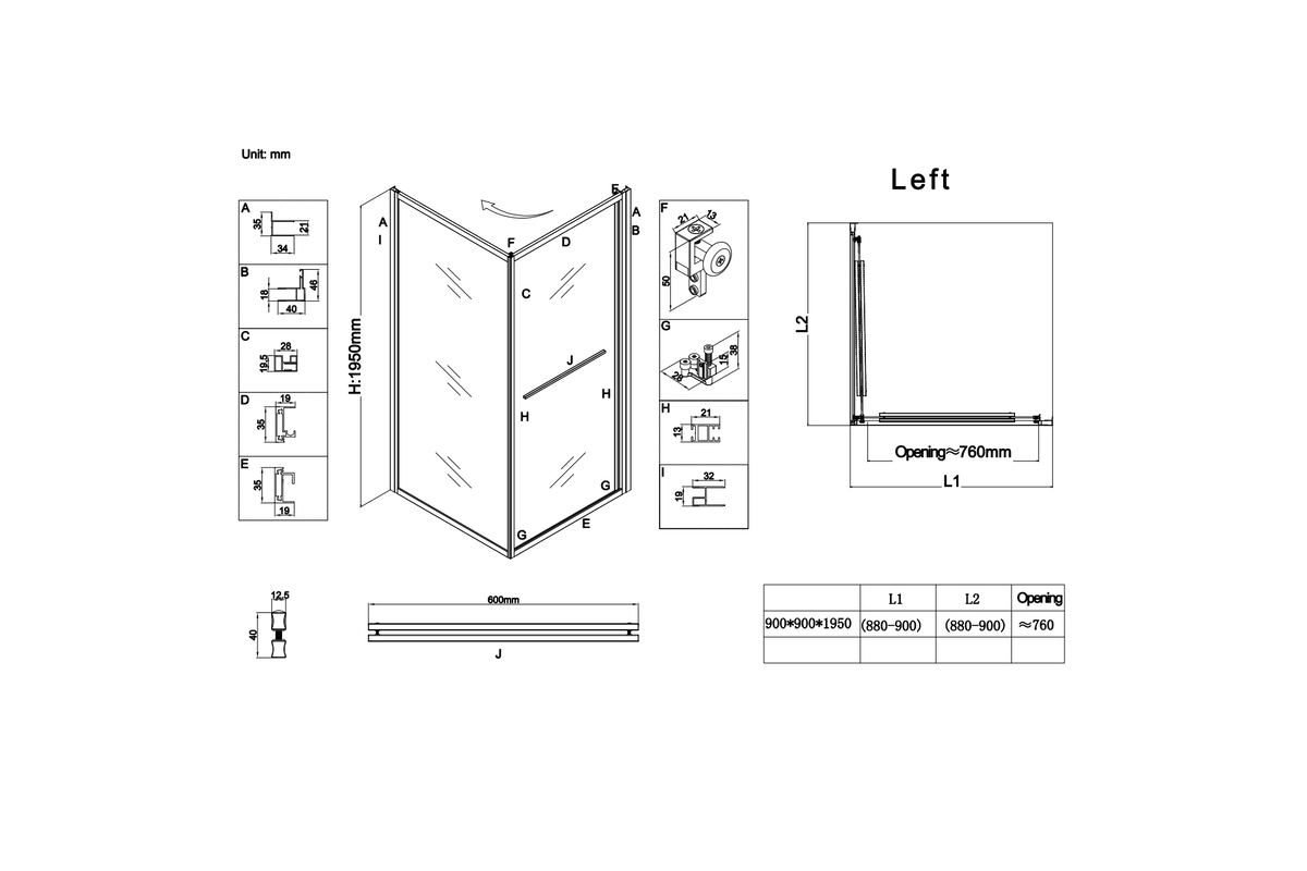 Упаковка 1/1. Глухое стекло -1, стеклянная дверь -1, профили, направляющие, двойная ручка, двойные ролики, комплект крепежных деталей, набор уплотнителей, заглушки.