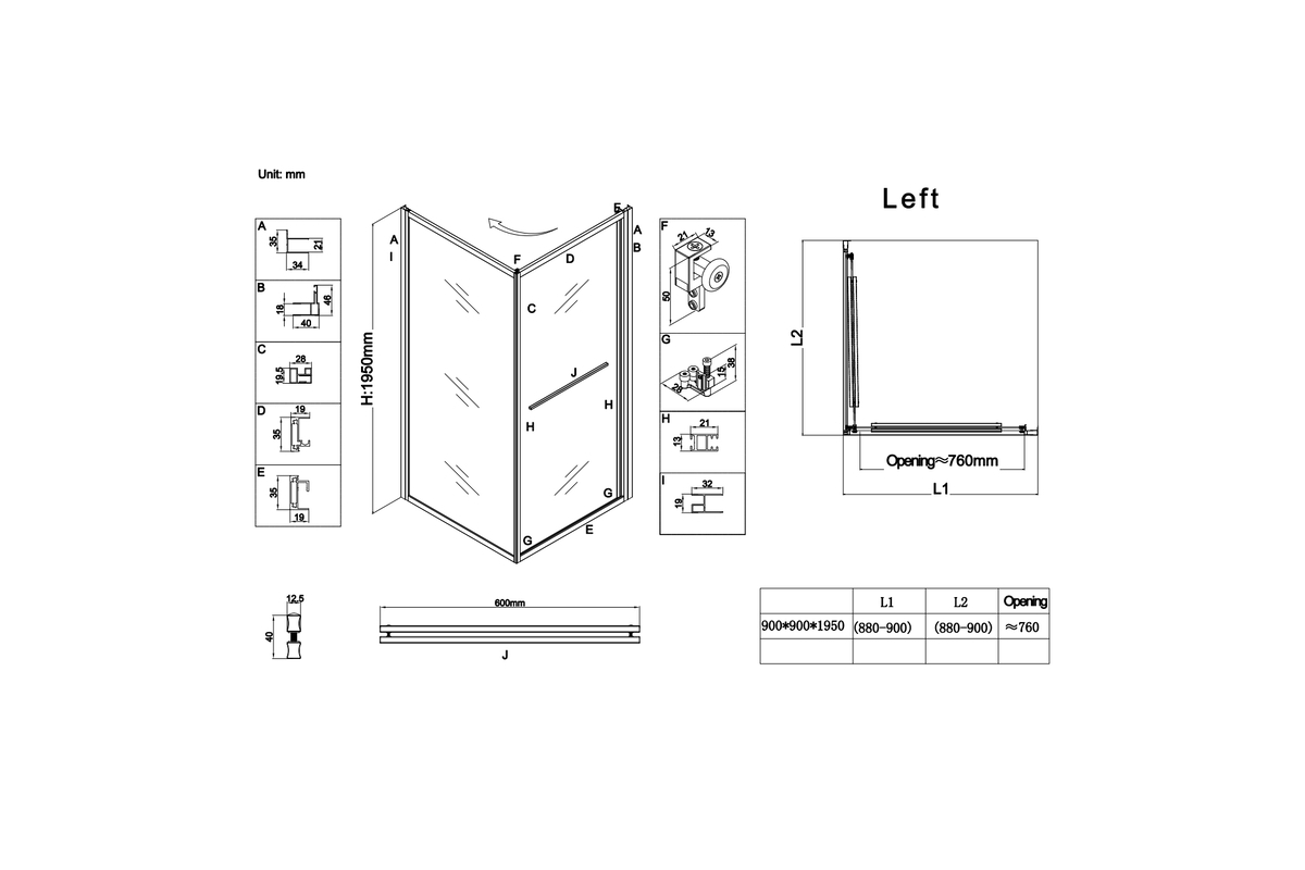 Упаковка 1/1. Глухое стекло -1, стеклянная дверь -1, профили, направляющие, двойная ручка, двойные ролики, комплект крепежных деталей, набор уплотнителей, заглушки.