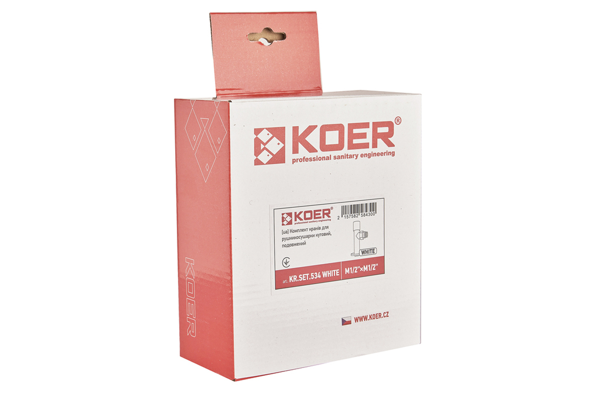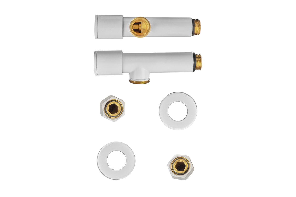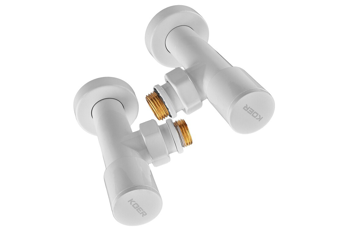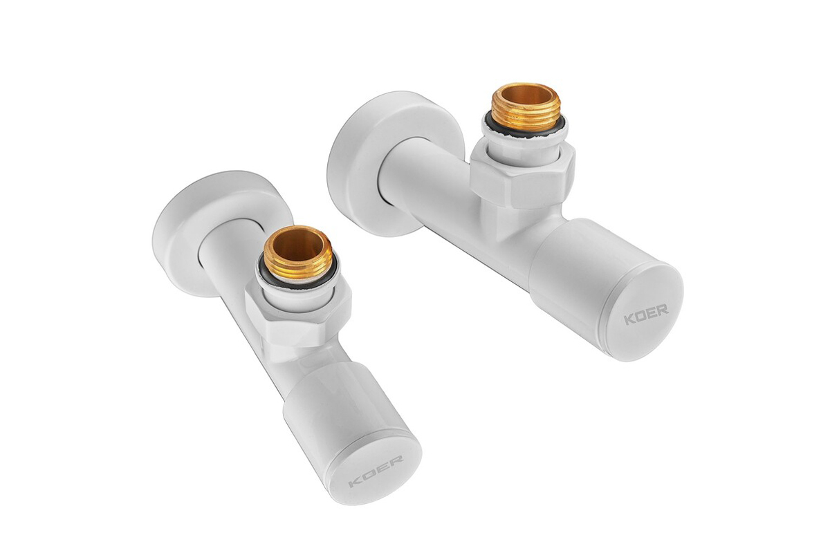 Комплект кранов для полотенцесушителя угловой Koer KR.SET.534 WHITE - M1/2xM1/2 удлиненный белый (KR5843)