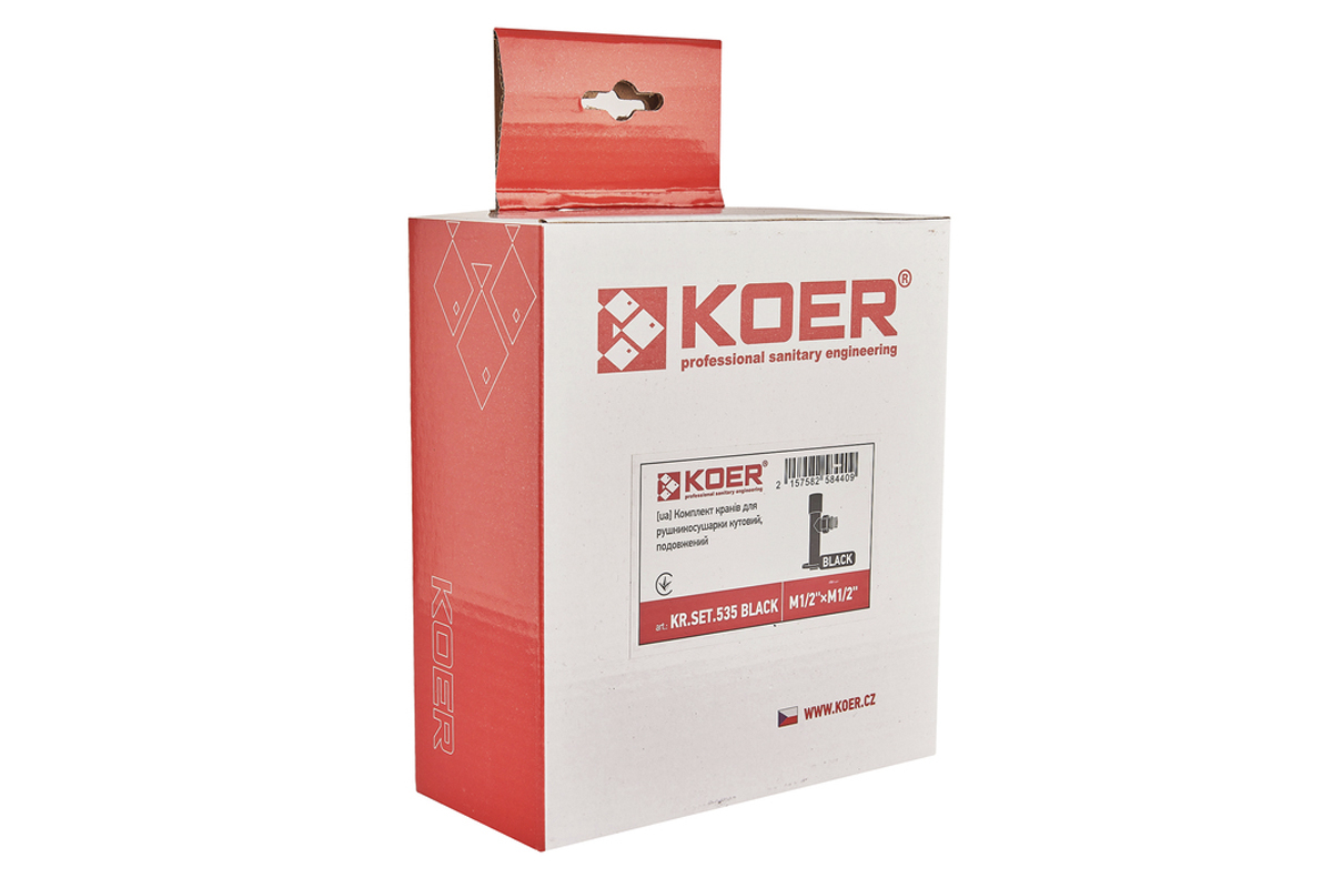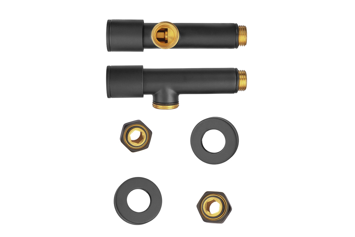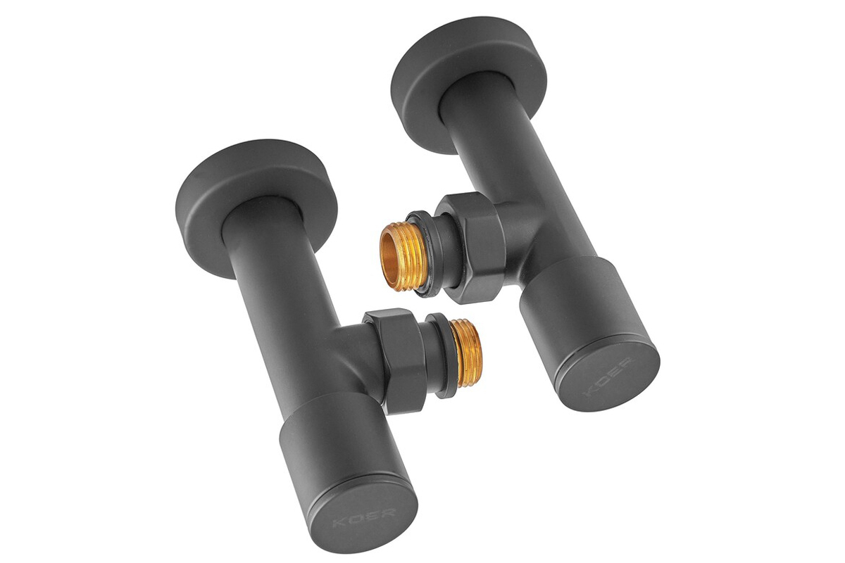 Комплект кранов для полотенцесушителя угловой Koer KR.SET.535 BLACK - M1/2xM1/2 удлиненный чёрный (KR5844)