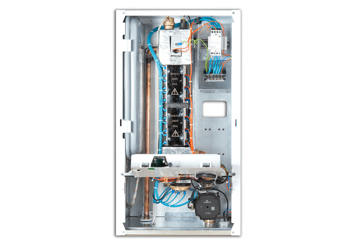 Преимуществами являются удобный для монтажа и обслуживания корпус, циркуляционный насос с частотным регулированием, медные блоки ТЭНов, гидравлическая группа европейского производства. Особым преимуществом является сенсорный цветной дисплей диагональю 5 дюймов, благодаря которому вводить параметры и следить за работой котла стало интуитивно просто.