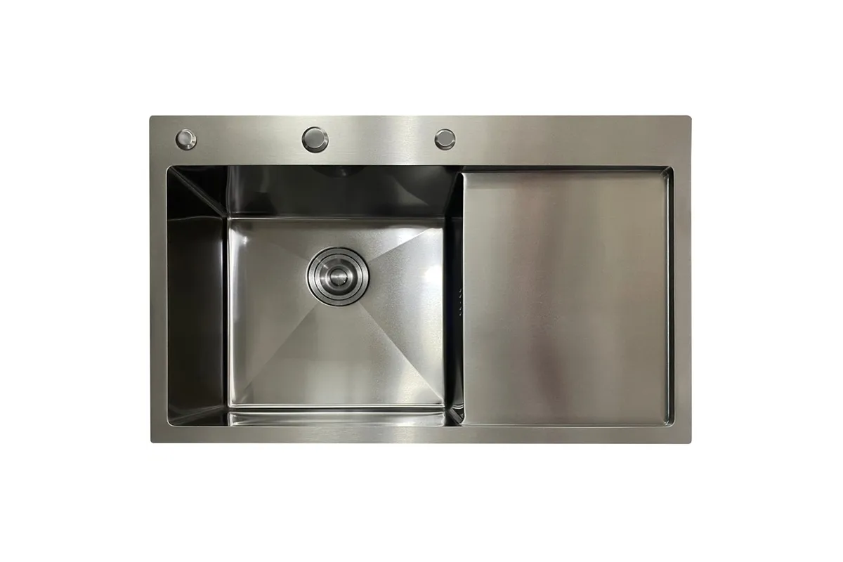 Мойка имеет PVD покрытие. Оно наносится по схожей с хромированием технологии, имея при этом большую стойкость к механическим повреждениям.