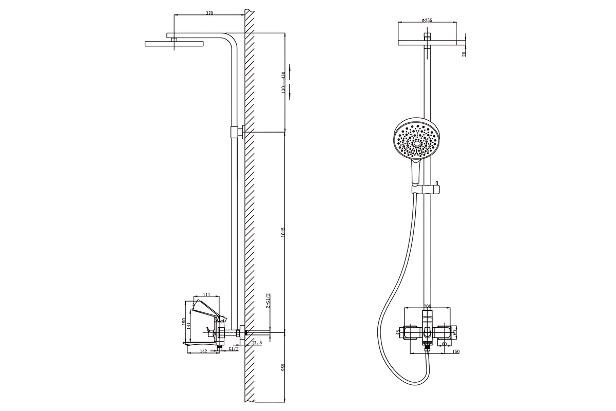 Шланг 150 см, ручная лейка, потолочная лейка, чашки, эксцентрики, резиновые прокладки, держатель для лейки