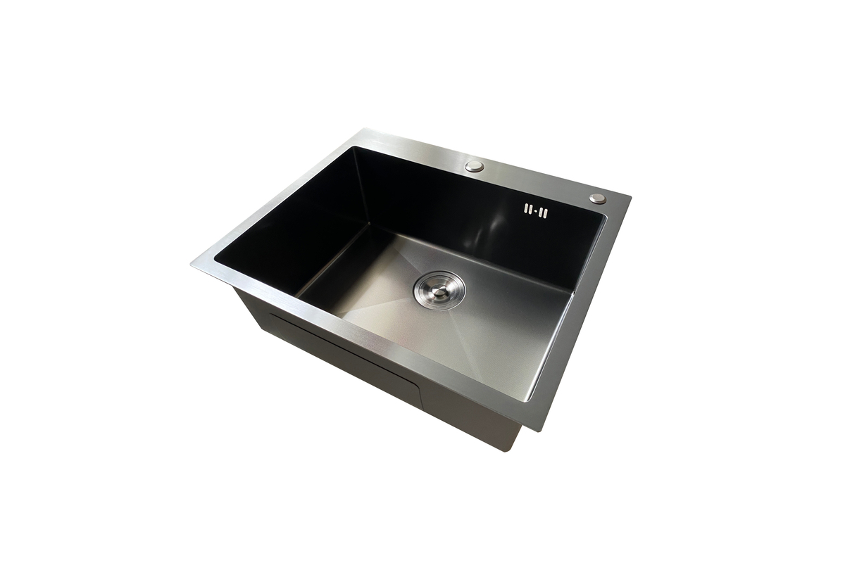 Мойка имеет PVD покрытие. Оно наносится по схожей с хромированием технологии, имея при этом большую стойкость к механическим повреждениям.